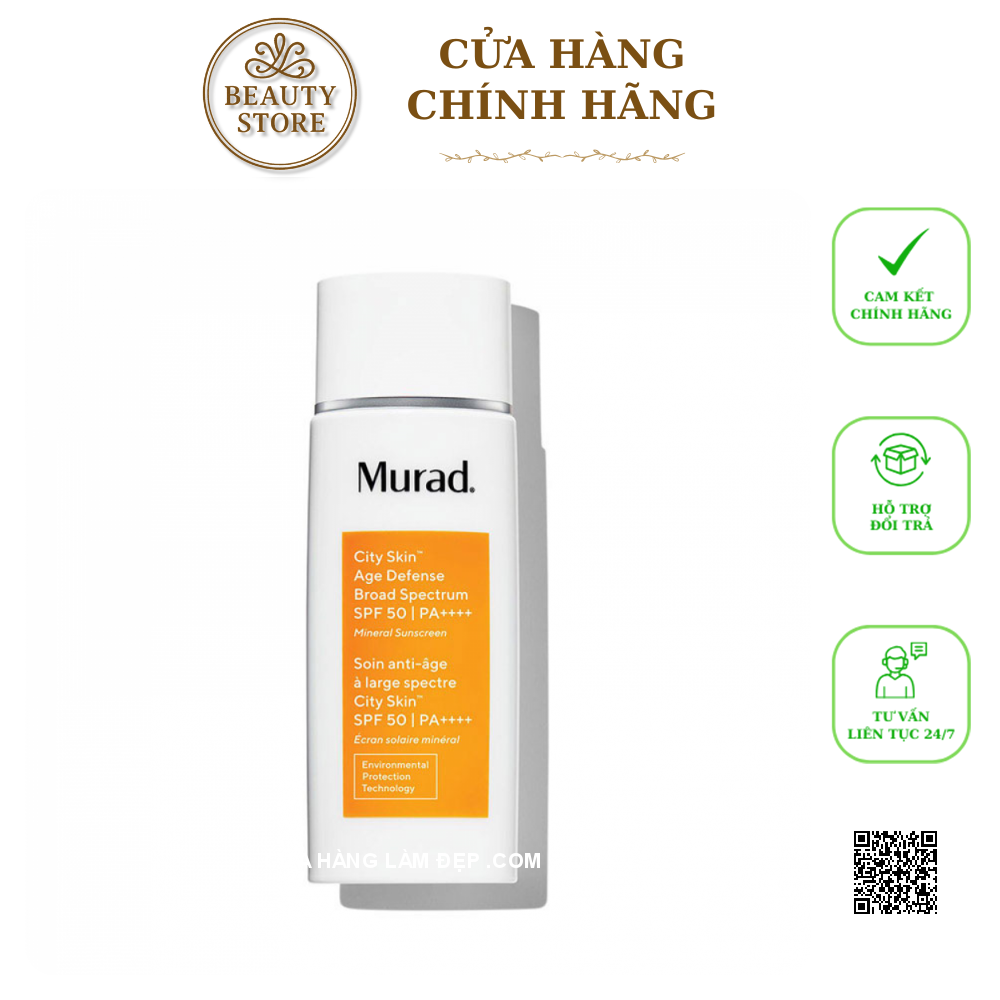 - Kem hỗ trợ Hỗ Trợ Chống nắng 100% khoáng chất City Skin Age Defense Broad Spectrum SPF 50 PA++++ là sản phẩm mới nhất thuộc dòng Nám và Lão hóa do môi trường (Environmental Shield) của Murad, đặc biệt thiết kế riêng để bảo vệ toàn diện cho các “làn da thành thị” - City Skin.