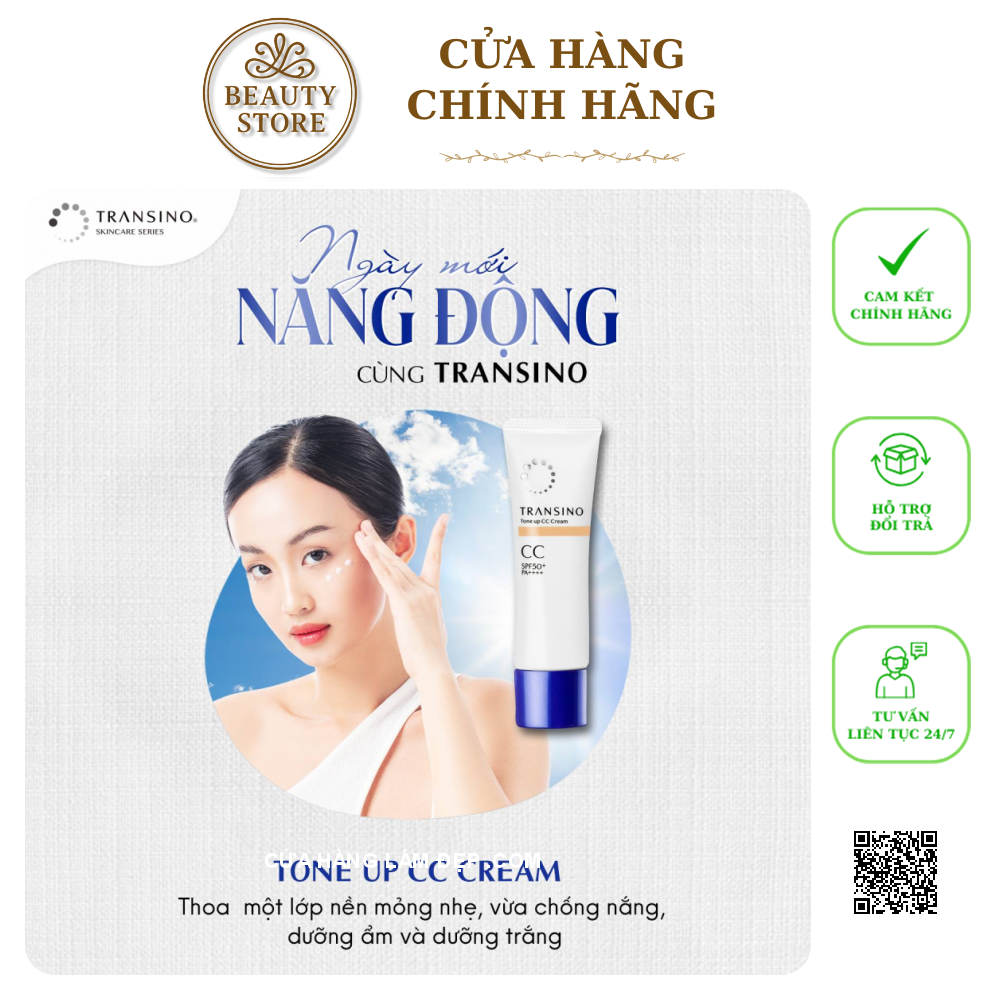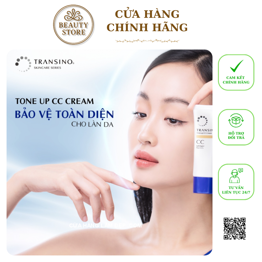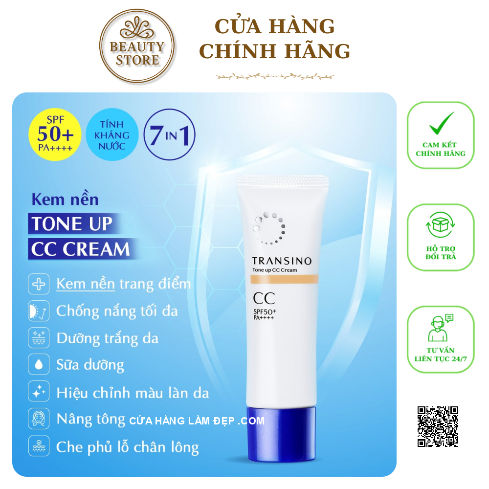 Giới thiệu Kem hỗ trợ Hỗ Trợ Chống Nắng Nâng Tông Transino Tone Up CC Cream SPF50+ PA++++ :