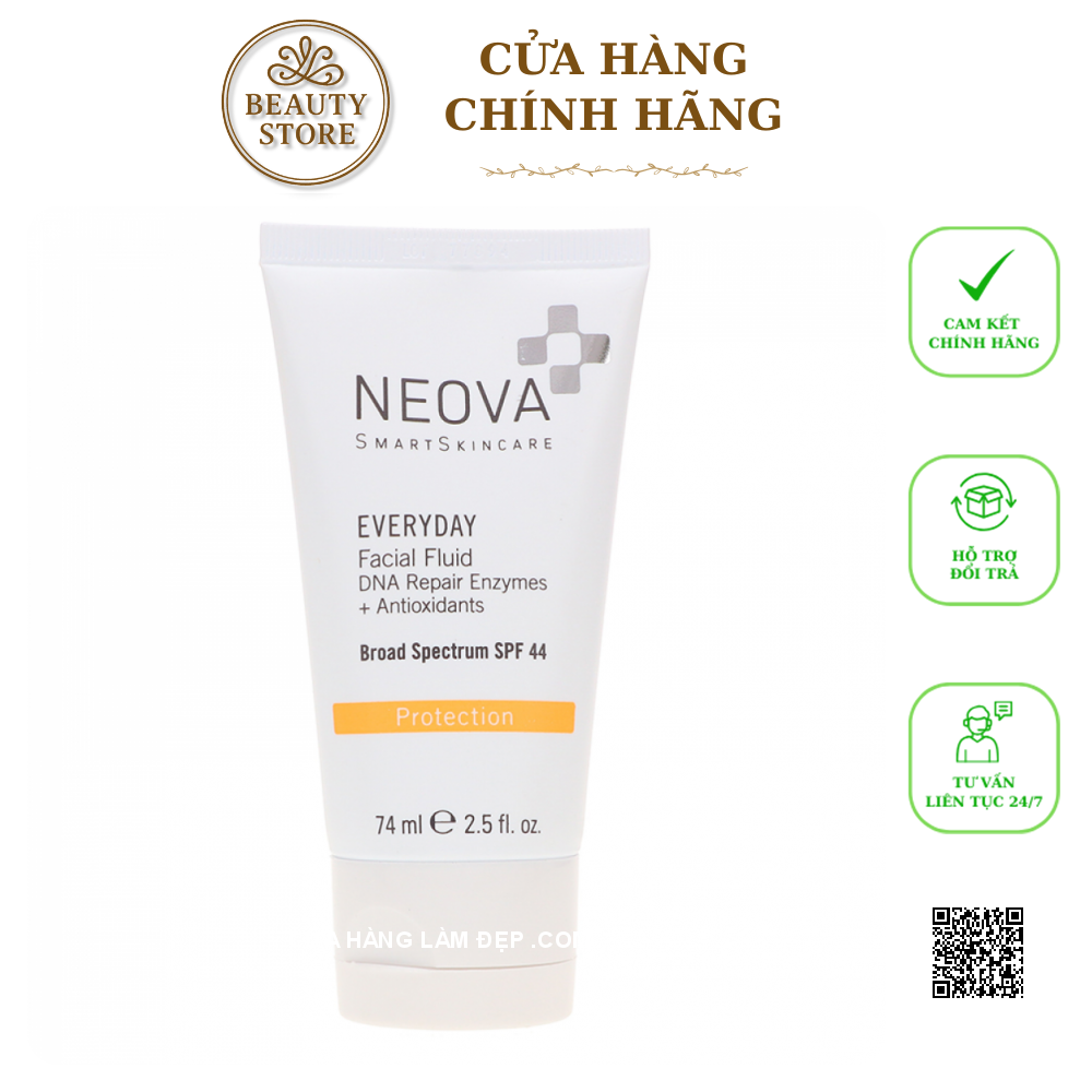 Tại hệ thống cửa hàng làm đẹp, Kem hỗ trợ Hỗ Trợ Chống Nắng Neova Protection Everyday Facial Fluid SPF44 có giá: 1.490.000 VND