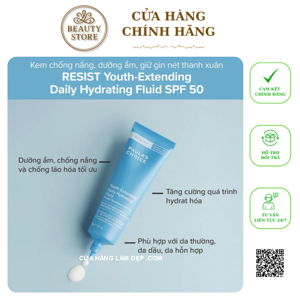 - Bạn có thể tìm mua Kem hỗ trợ Hỗ Trợ Chống Nắng Phổ Rộng Paula’s Choice Resist Youth-Extending Daily Hydrating Fluid SPF50 qua website: cuahanglamdep.com