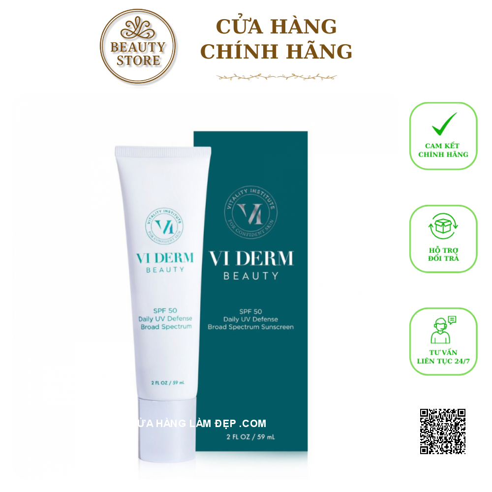 Kem hỗ trợ Hỗ Trợ Chống Nắng VI Derm SPF 50 Daily UV Defense Broad Spectrum Sunscreen – Giải Pháp Hoàn Hảo Cho Làn Da Mạnh Mẽ Trước Tia UV