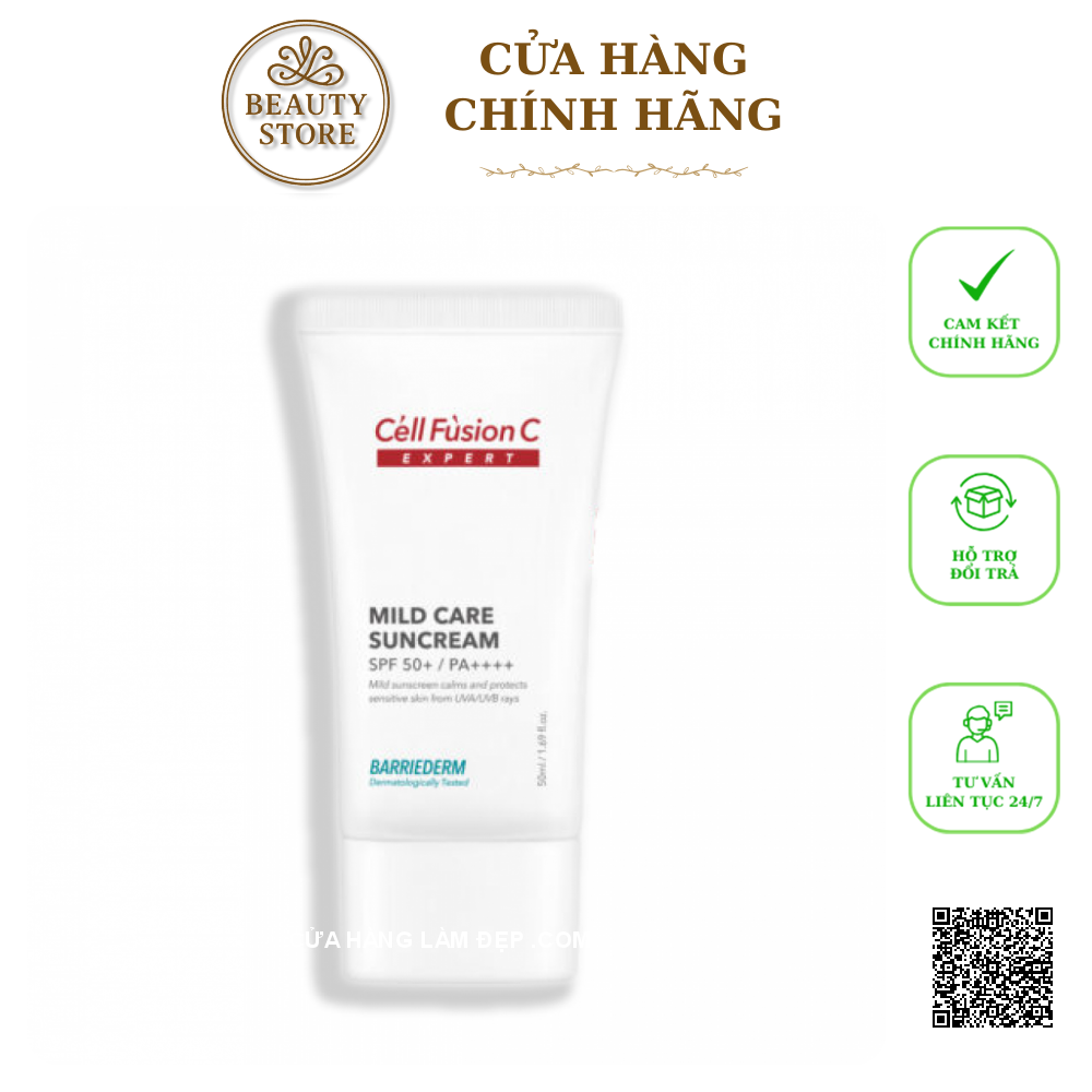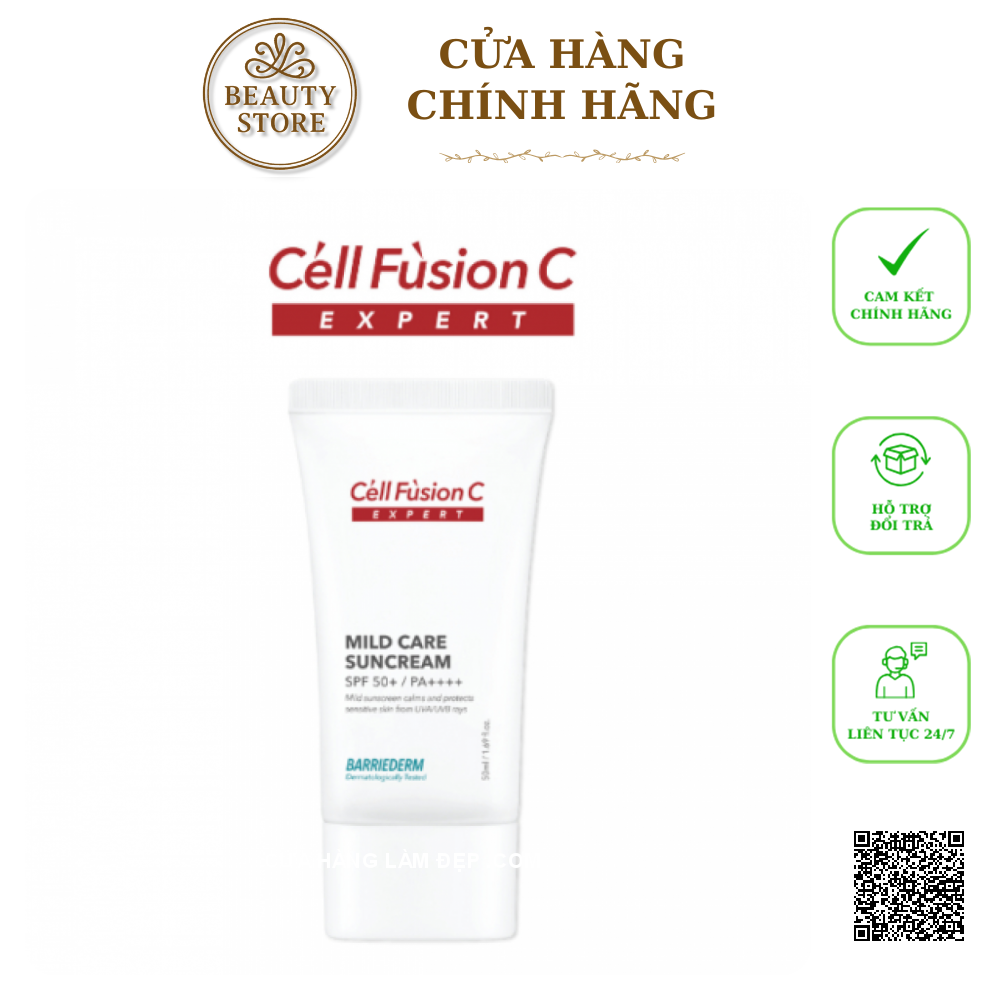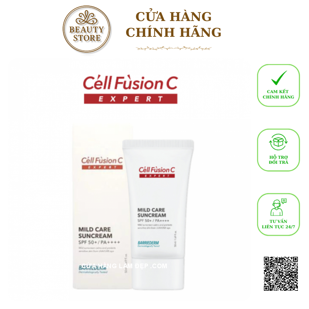 Tại hệ thống Cửa Hàng Làm Đẹp, sản phẩm Kem hỗ trợ Hỗ Trợ Chống Nắng Vật Lý Tăng Cường Hàng Rào Bảo Vệ Da Cell Fusion C Expert Barriederm Mild Care Suncream SPF 50+/ PA++++ có giá 770.000 VNĐ
