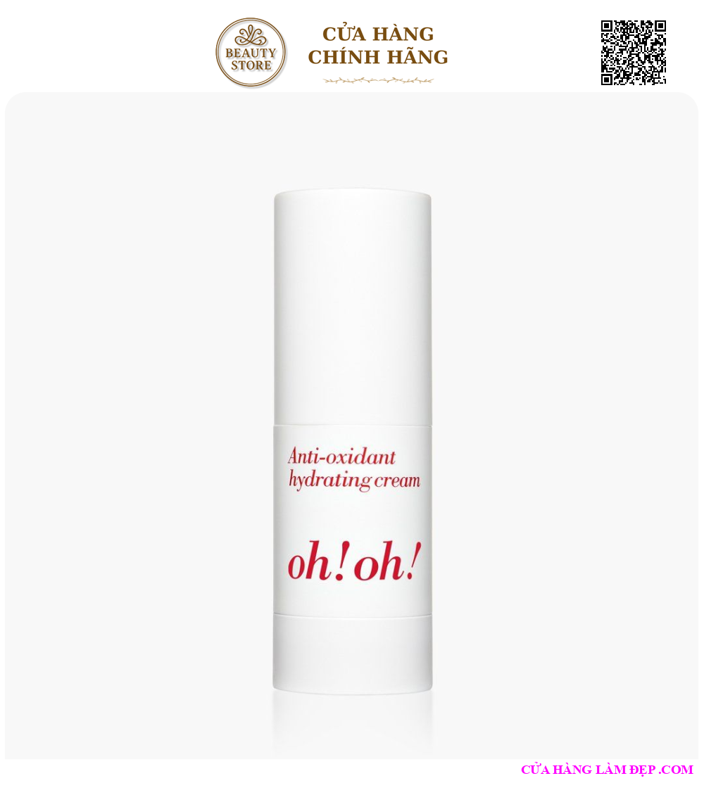 Oh!Oh! Anti-oxidant hydrating cream là sản phẩm kem dưỡng da mặt cao cấp đến từ thương hiệu mỹ phẩm oh!oh! của Hàn Quốc. Công thức vượt trội tích hợp mọi công dụng bạn cần chỉ trong một sản phẩm duy nhất: chống oxy hóa + dưỡng ẩm + chống lão hóa + làm sáng da. Đặc biệt, sản phẩm có bảng thành phần "siêu đẹp" với hàng loạt các hoạt chất chăm sóc da lý tưởng như Retinal, Hyaluronic Acid, Collagen thủy phân, Niacinamide, Panthenol, Adenosine, các chiết xuất thực vật tự nhiên giàu vitamin C... sẽ giúp nuôi dưỡng cho làn da dần trở nên khỏe mạnh, sáng mịn và tươi trẻ hơn mỗi ngày. Sản phẩm an toàn và phù hợp cho mọi loại da, kể cả da nhạy cảm.