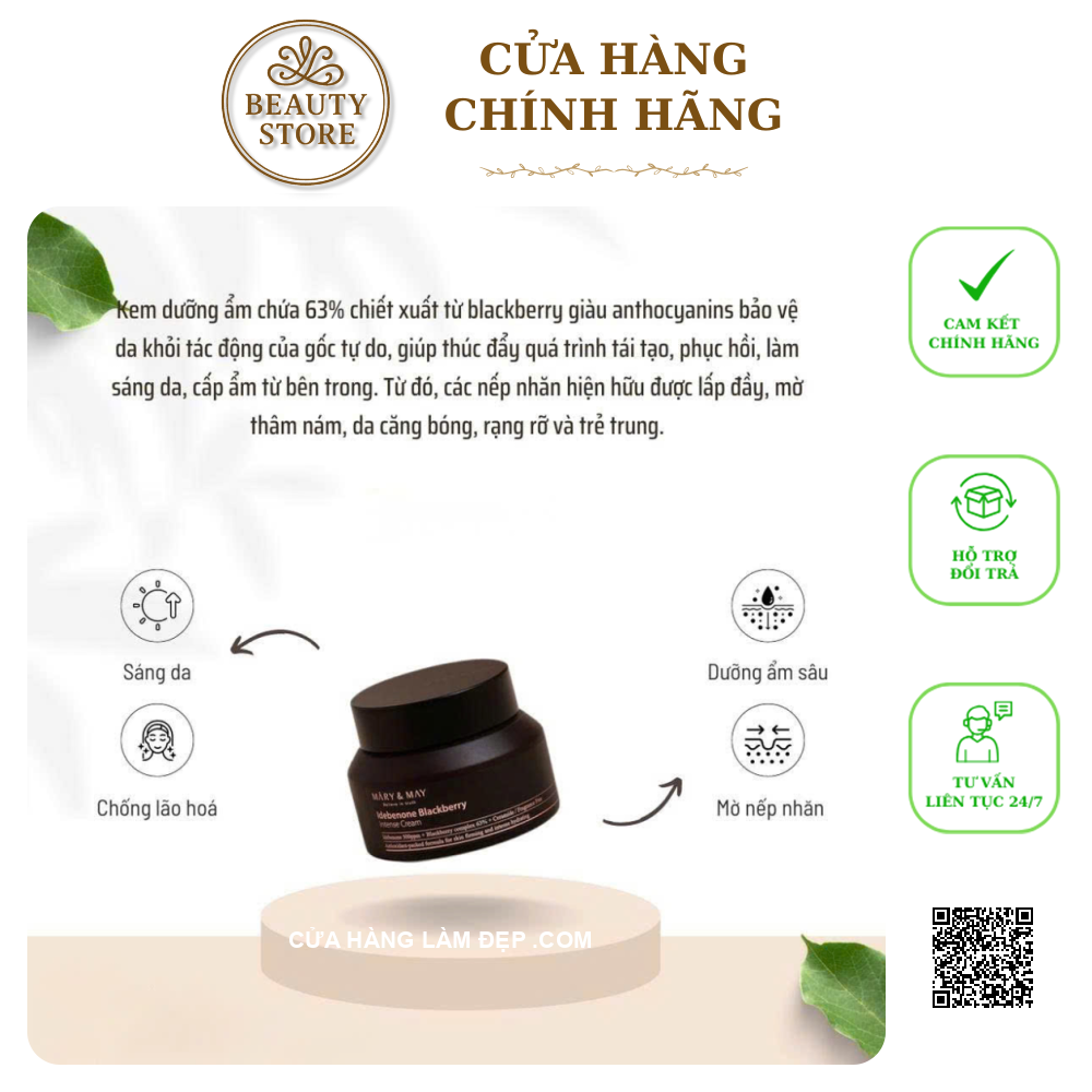 Kem Dưỡng Chuyên Sâu Mary&May Idebenone + Blackberry Complex Intense Cream 70g Hàn Quốc được khách hàng của Hệ Thống Cửa Hàng Làm Đẹp đánh giá cao. Bạn có thể xem thêm nội dung đánh giá dưới phần bình luận