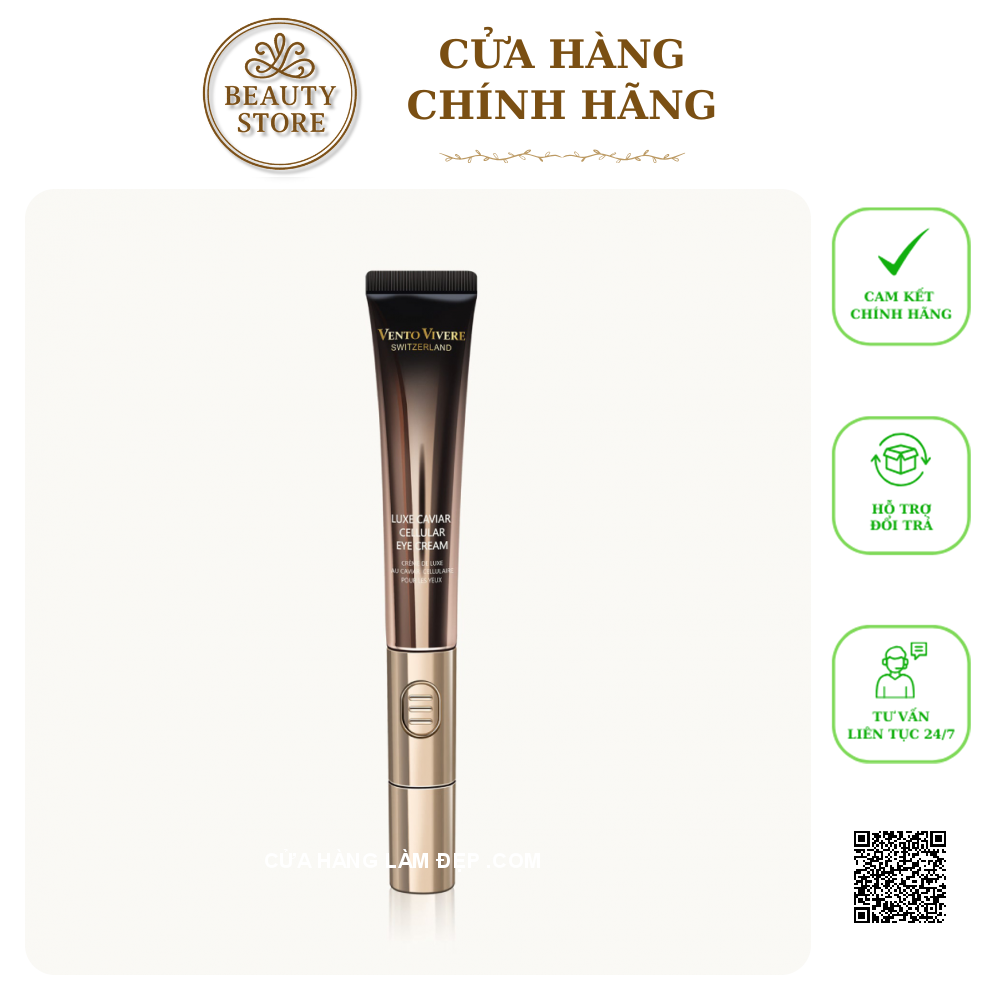 - Nối tiếp những siêu phẩm dưỡng da mặt Vento Vivere đưa ra 1 siêu phẩm dành riêng cho vùng đặc biệt nhạy cảm là mắt. Kem Dưỡng Da Vùng Mắt Vento Vivere Switzerland Luxe Caviar Cellular Eye Cream kết hợp đầu rung massage tần số thúc đẩy tinh chất thẩm thấu và hiệu quả được nâng cao hơn so với sản phẩm dưỡng thông thường.