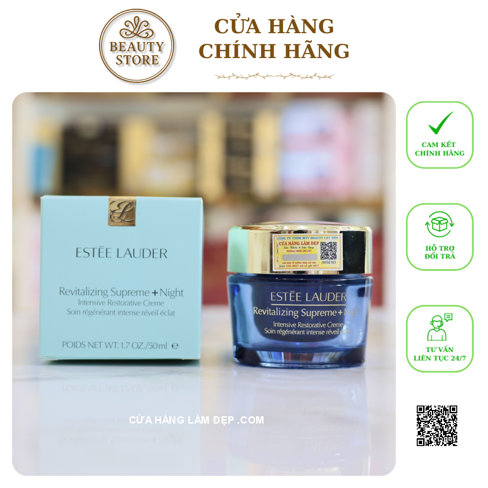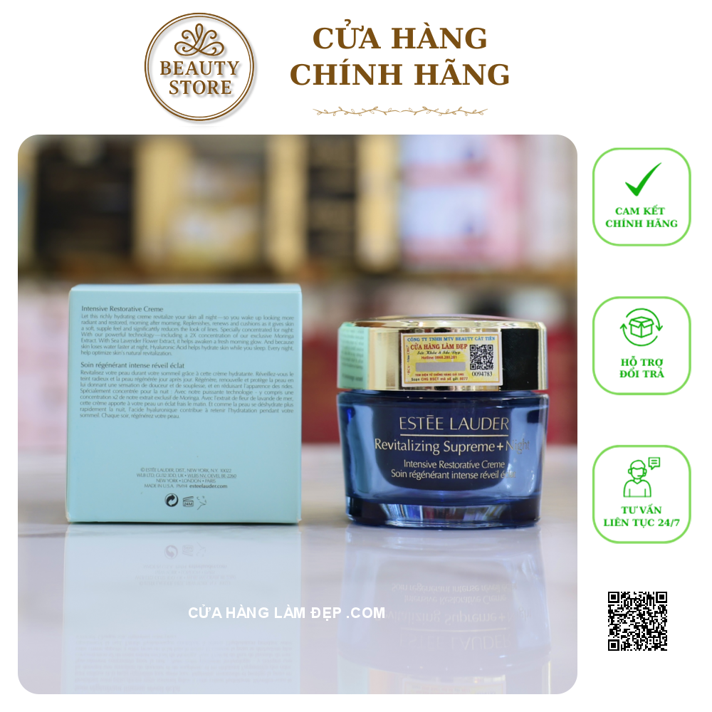 - Kem dưỡng đêm hỗ trợ ngừa lão hóa và phục hồi chuyên sâu Estee Lauder Revitalizing Supreme+ Night Intensive Restorative Creme là kem dưỡng giàu dưỡng chất, độ ẩm cho da và đa tác động với công thức dưỡng đêm chuyên biệt, giúp da bạn săn chắc và giảm thiểu nếp nhăn trong giấc ngủ.