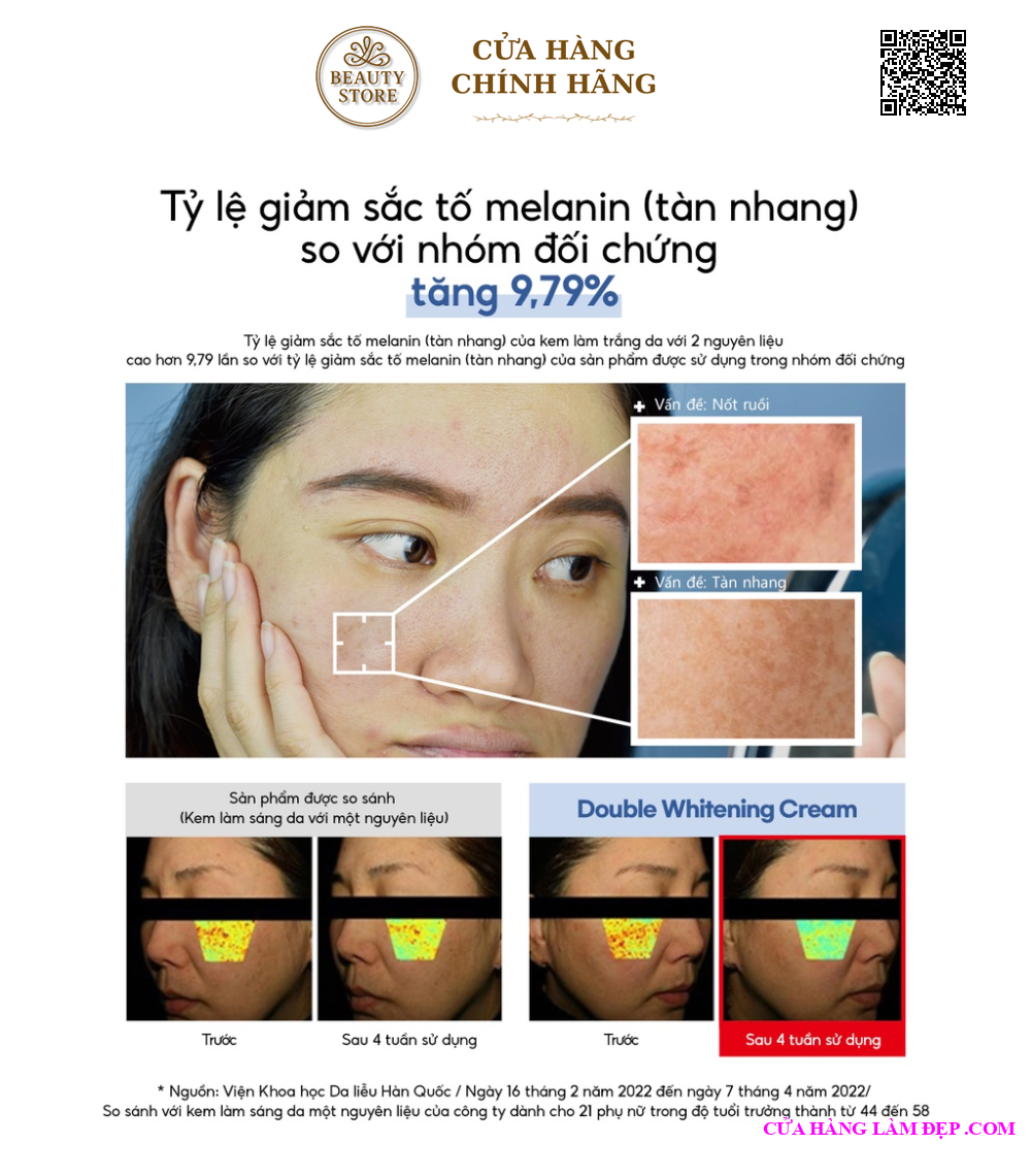 - Mang lại hiệu quả làm trắng kép, ức chế sản sinh melanin.