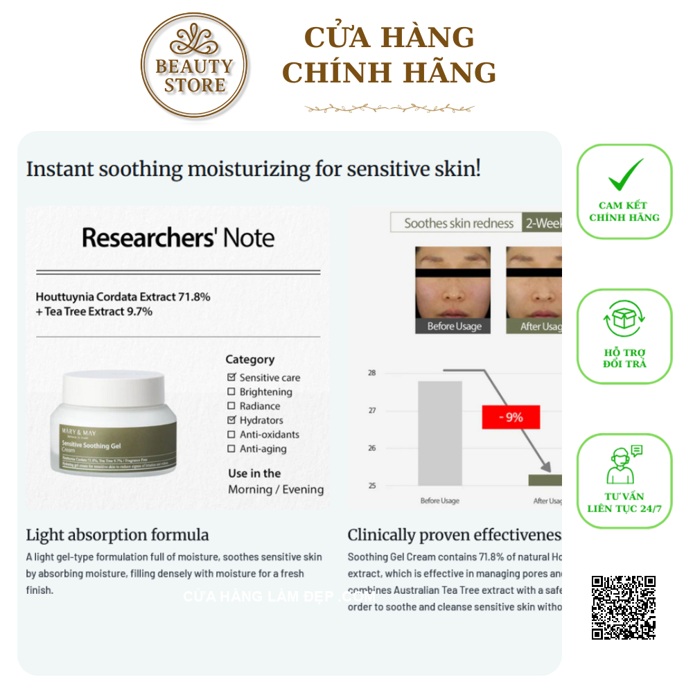 Kem Dưỡng Dịu Da, Cải Thiện Dầu Thừa Mary & May Sensitive Soothing Gel Cream 70g Hàn Quốc được khách hàng của Hệ Thống Cửa Hàng Làm Đẹp đánh giá cao. Bạn có thể xem thêm nội dung đánh giá dưới phần bình luận