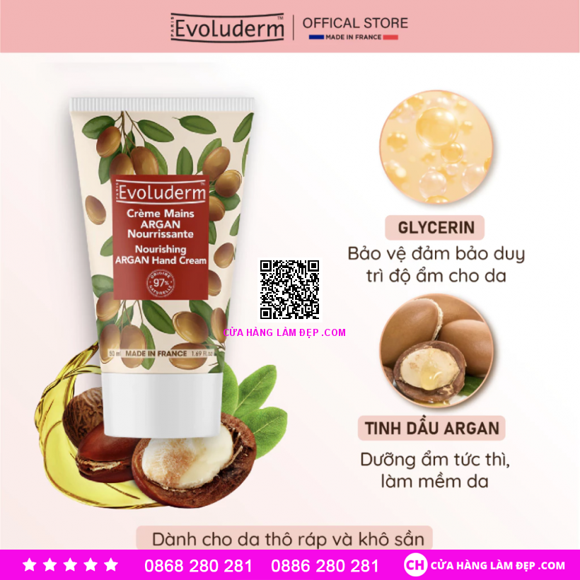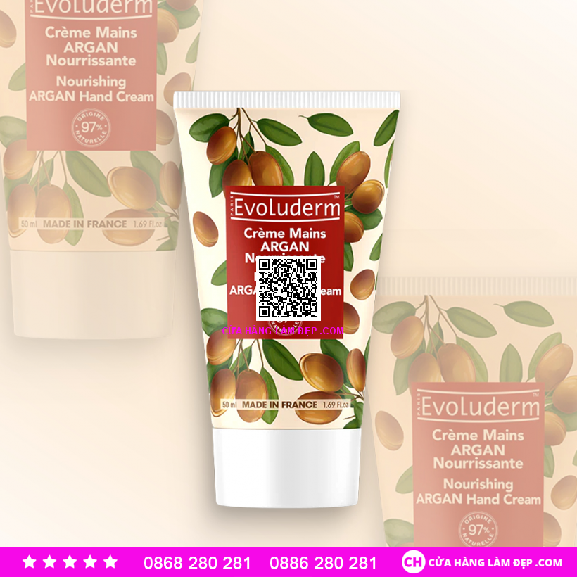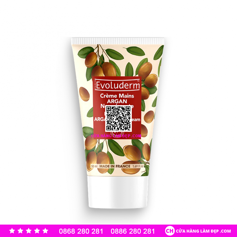 Tại hệ thống Cửa Hàng Làm Đẹp, sản phẩm Evoluderm Kem Dưỡng Ẩm Da Tay Tinh Dầu Argan 50ml từ Pháp có giá 125.000 VNĐ