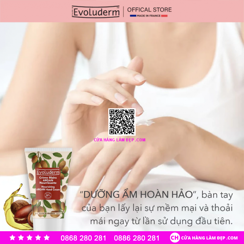 Evoluderm Kem Dưỡng Ẩm Da Tay Tinh Dầu Argan được khách hàng của Hệ Thống Cửa Hàng Làm Đẹp đánh giá cao.