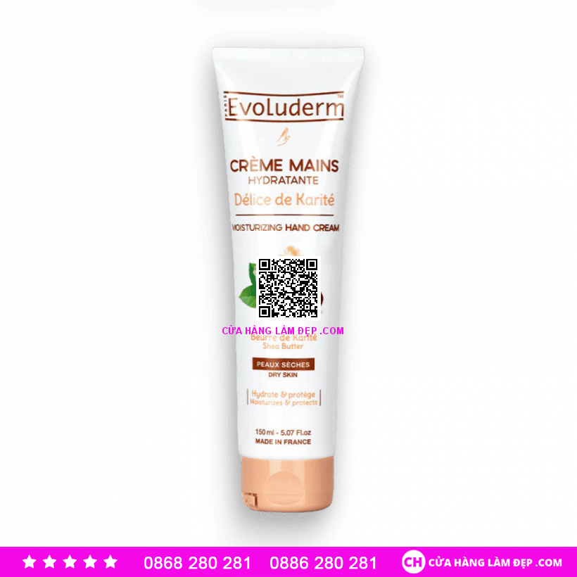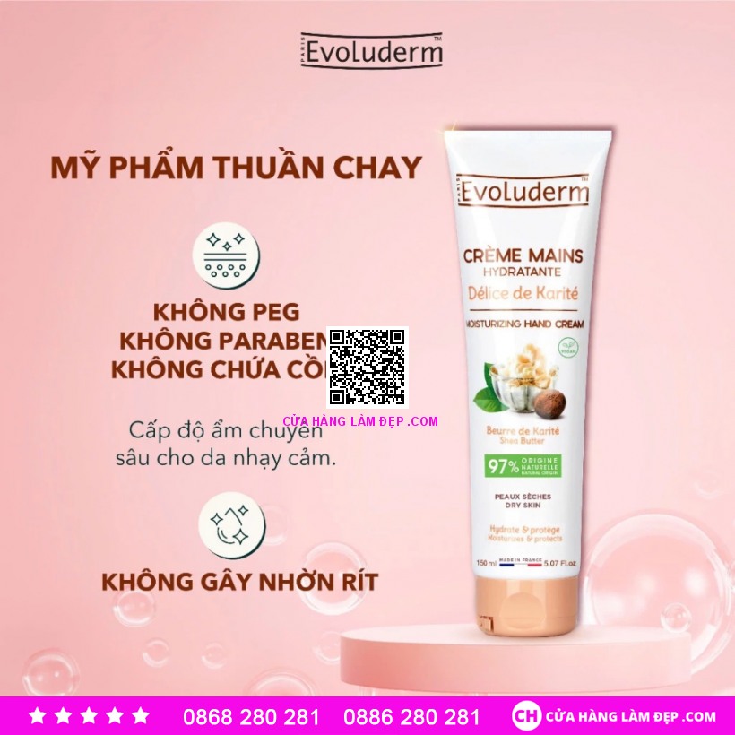 Tại hệ thống Cửa Hàng Làm Đẹp, sản phẩm Evoluderm Kem Dưỡng Da Tay Bơ Hạt Mỡ 150ml từ Pháp có giá 175.000 VNĐ