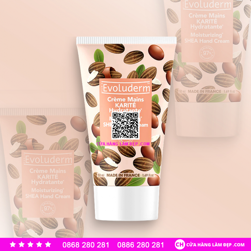 Tại hệ thống Cửa Hàng Làm Đẹp, sản phẩm Evoluderm Kem dưỡng da tay Shea 50ml có giá 125.000 VNĐ