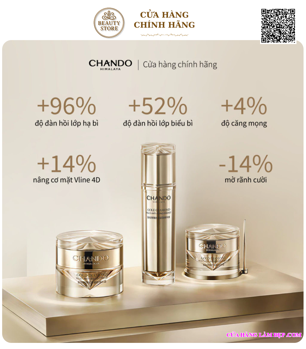 Kem dưỡng mắt Kim cương vàng Định hình đường nét vùng mắt săn chắc CHANDO Himalaya là sản phẩm cao cấp đến từ thương hiệu CHANDO – một hãng mỹ phẩm nội địa Trung Quốc nổi tiếng với các dòng chăm sóc da chiết xuất từ thiên nhiên vùng núi Himalaya. Sản phẩm được thiết kế chuyên biệt để cải thiện độ săn chắc vùng da quanh mắt, giảm nếp nhăn và làm rõ đường nét mắt, đặc biệt hiệu quả với các dấu hiệu lão hóa do trọng lực.