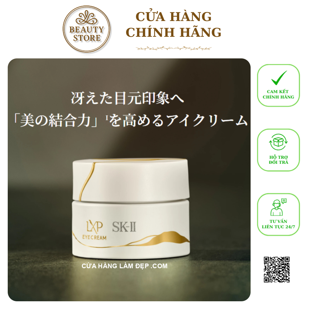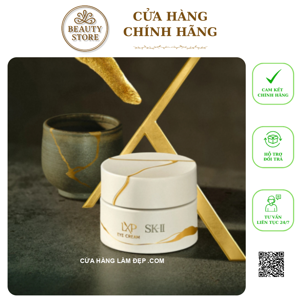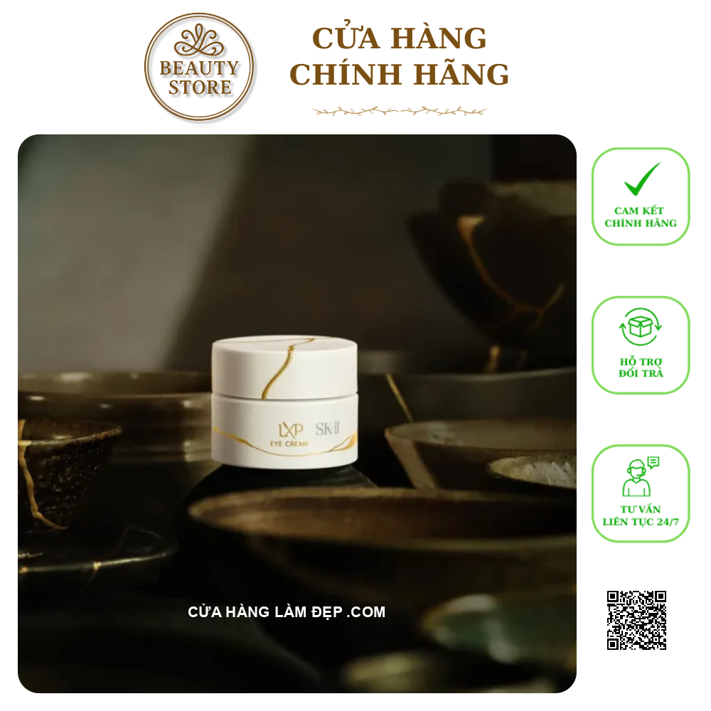 Kem mắt SK-II LXP Kintsugi Eye Cream là sản phẩm cao cấp trong dòng LXP Kintsugi – biểu tượng chăm sóc da “hàn gắn” như nghệ thuật Kintsugi Nhật Bản. Nó được thiết kế để tối ưu hóa quá trình phục hồi vùng da quanh mắt, mang lại sự săn chắc, giảm nếp nhăn, quầng thâm và làm sáng da mắt một cách tinh tế. Sản phẩm kết hợp Pitera™ cô đặc với các dưỡng chất cao cấp nhằm tái tạo Tinh chất mắt, tái sinh vẻ trẻ trung từ bên trong.
