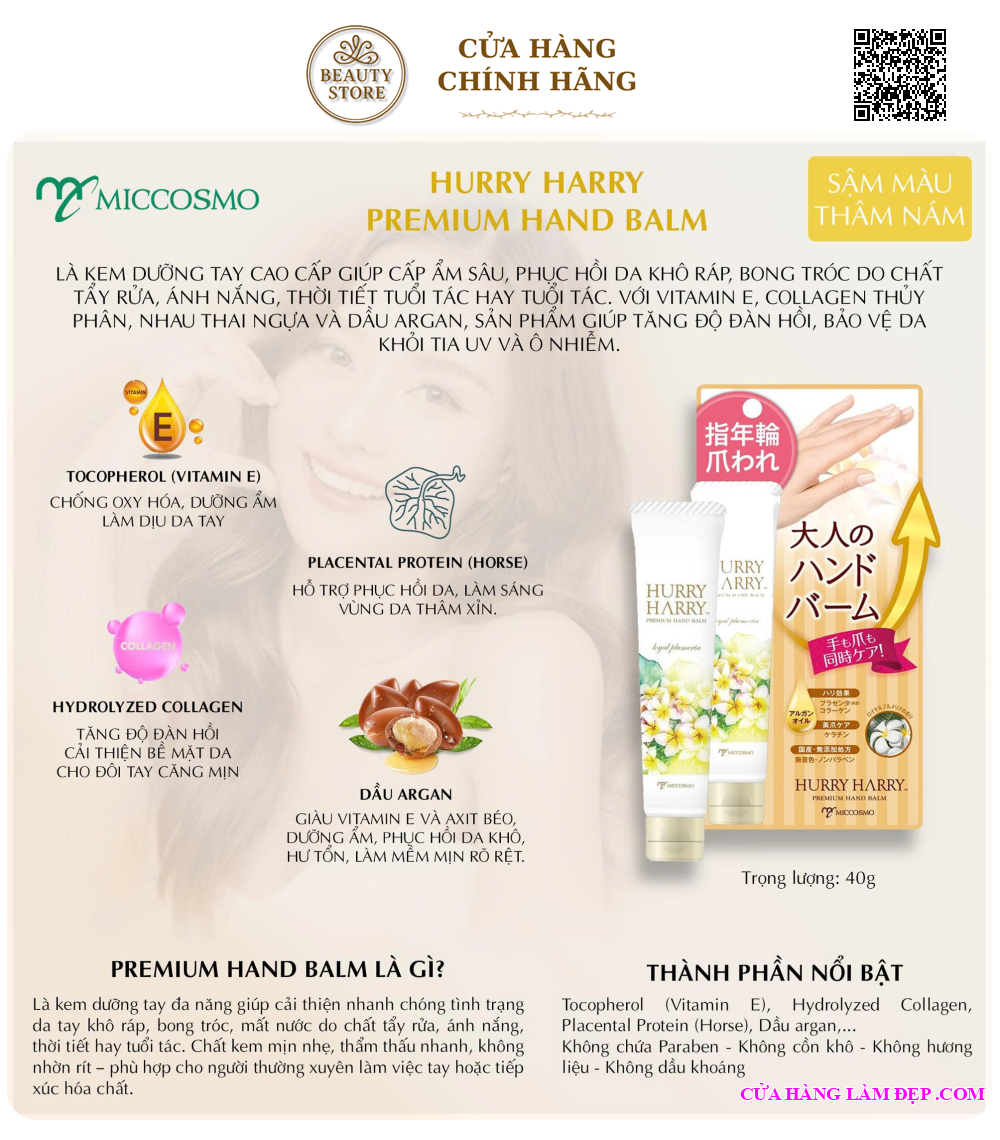 Tại hệ thống Cửa Hàng Làm Đẹp, sản phẩm Kem Dưỡng Miccosmo Hurry Harry Premium Hand Balm Cấp Ẩm Làm Mềm Da Tay Từ Nhật Bản 40g có giá 450.000 VNĐ