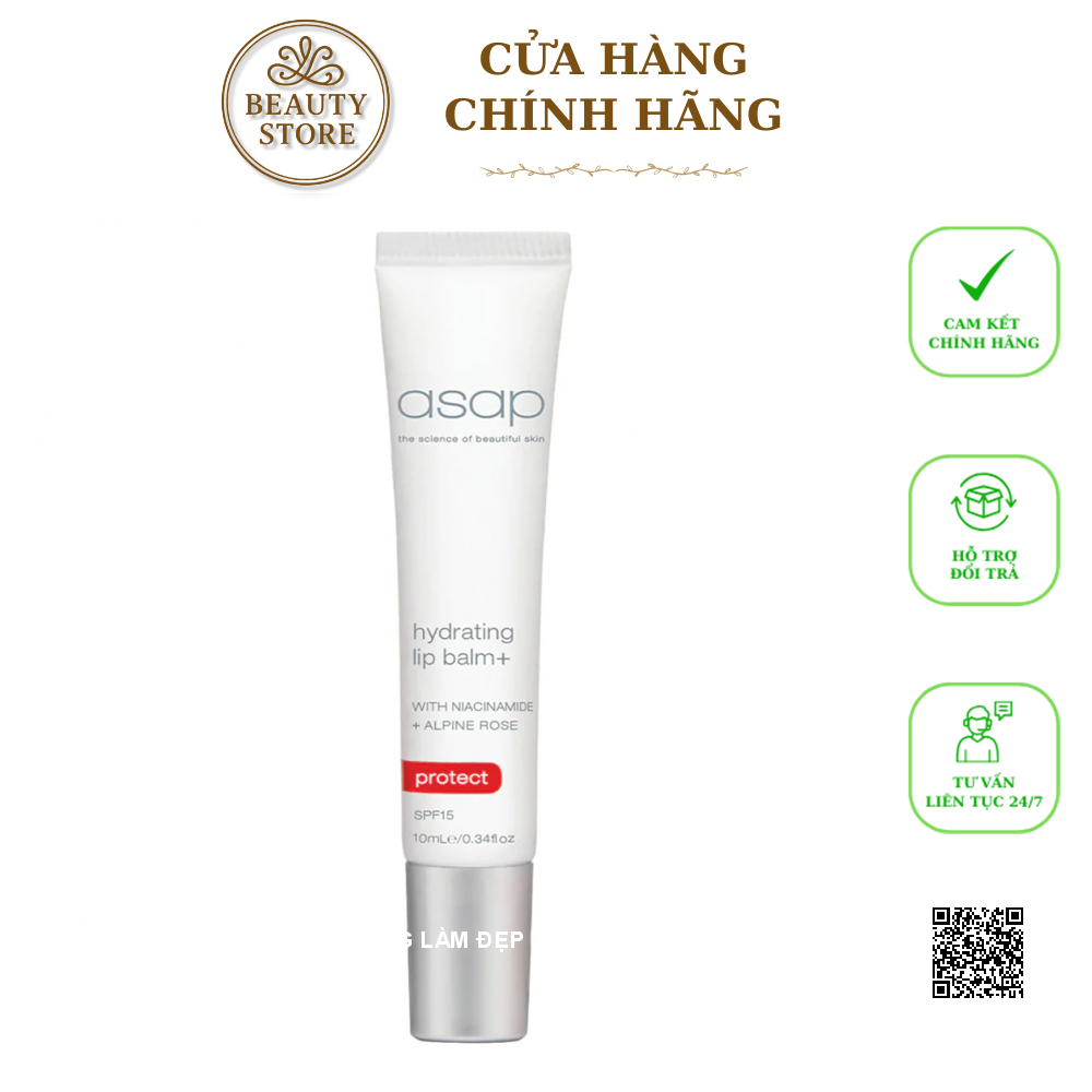 Kem dưỡng môi Asap Hydrating Lip Balm SPF15+ hỗ trợ Hỗ Trợ Chống nắng dưỡng ẩm mềm mịn 10ml phù hợp với người có đôi môi khô, nhạy cảm, nứt nẻ, đôi môi có vết lở loét, môi có vấn đề về mụn rộp.