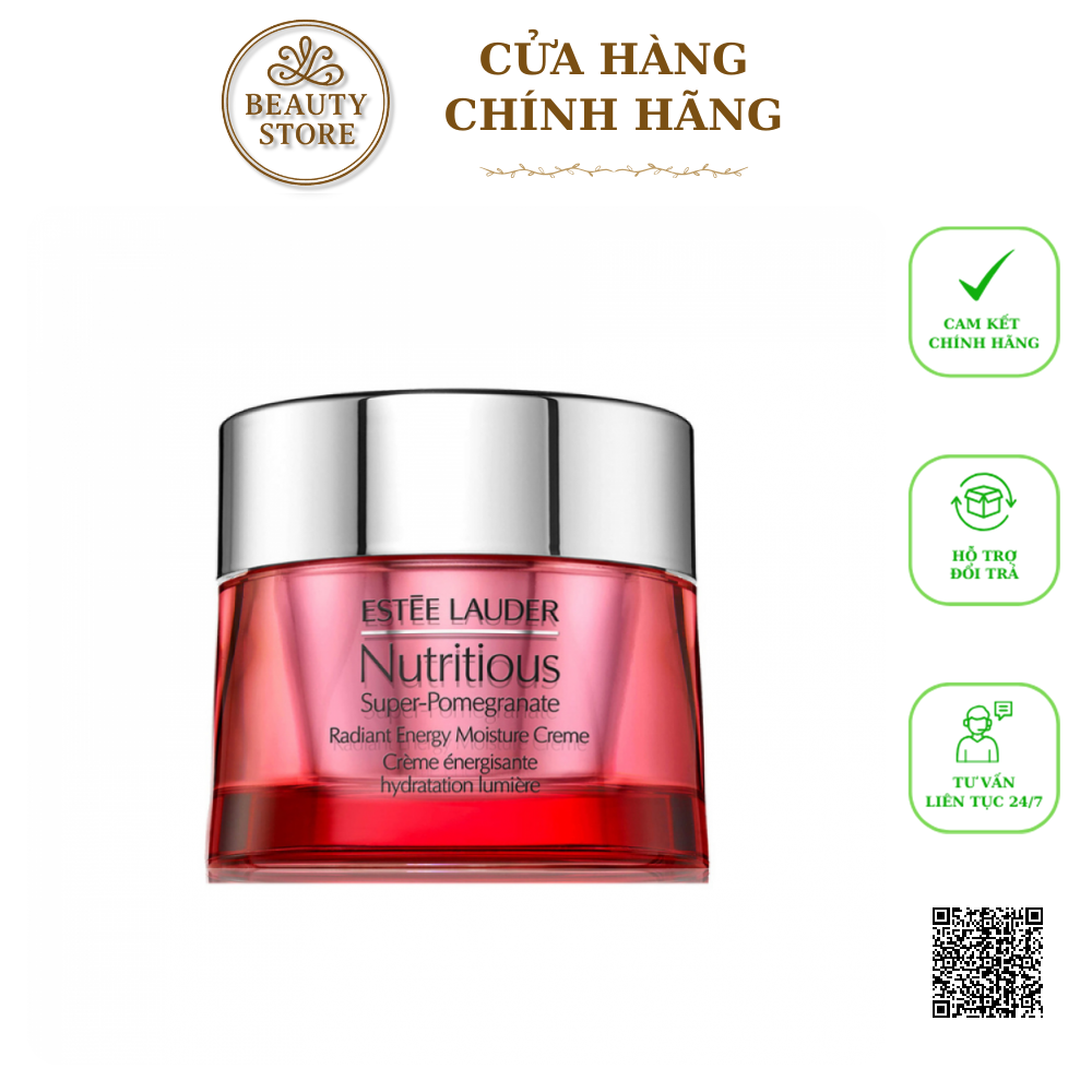 Kem Dưỡng Estée Lauder Nutritious Super-Pomegranate Radiant Energy Moisture Crème 50ml - Kem dưỡng ẩm siêu nhẹ từ quả lựu hỗ trợ giữ ẩm kéo dài suốt cả ngày, hỗ trợ giải độc cho da. Giàu dưỡng chất hỗ trợ hạn chế oxy, hỗ trợ bảo vệ da khỏi các gốc tự do do môi trường tạo ra.