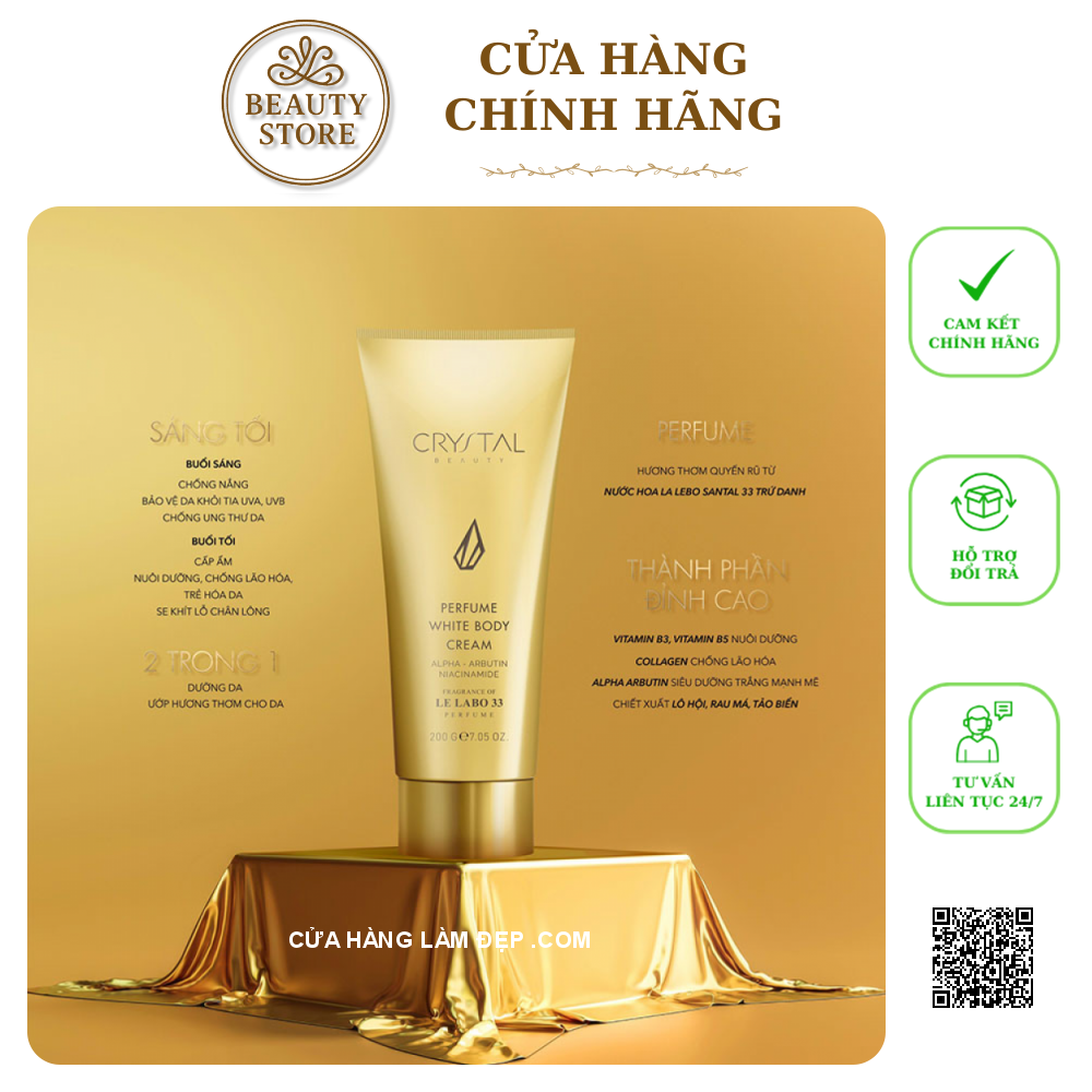 Kem Dưỡng Thể Body Crystal Perfume White Body Cream Hương Nước Hoa Le Labo 33với sự góp mặt của 2 thành phần dưỡng da, làm trắng “cực đỉnh” Alpha- Arbutin và Niacinamide giúp bật tone da ngay tức thì, xóa mờ thâm sạm cho làn da sáng hồng, rạng rỡ và đều màu. Sản phẩm hiện đang nhận được cơn mưa lời khen từ hàng triệu tín đồ skin care và beauty blogger nổi tiếng trong thời gian qua.
