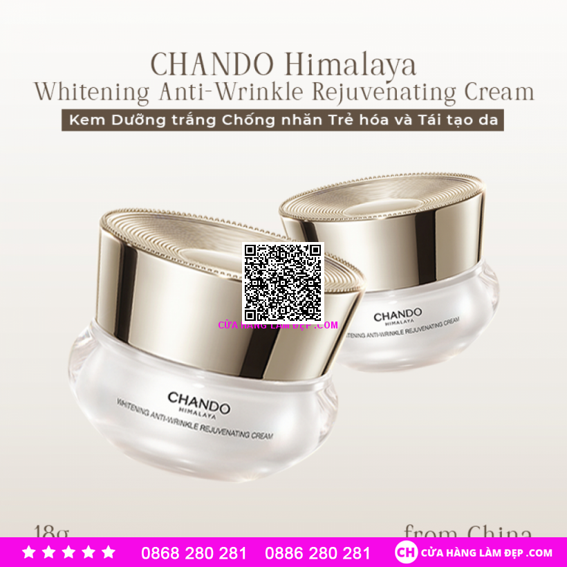 Tại hệ thống Cửa Hàng Làm Đẹp, sản phẩm Kem Dưỡng Trắng CHANDO Himalaya Whitening Anti-Wrinkle Rejuvenating Cream hỗ trợ ngừa Nhăn Đẹp Da Và Tái Tạo Da 18g Từ Trung Quốc có giá 715.000 VNĐ