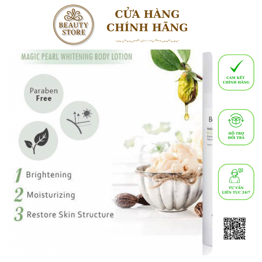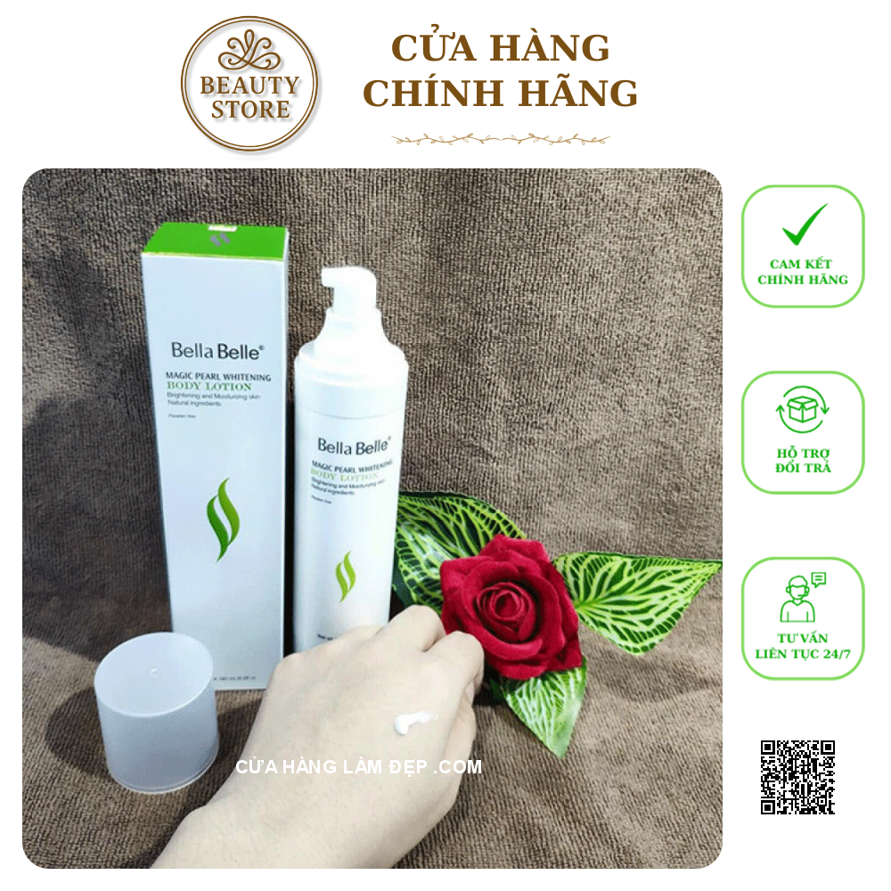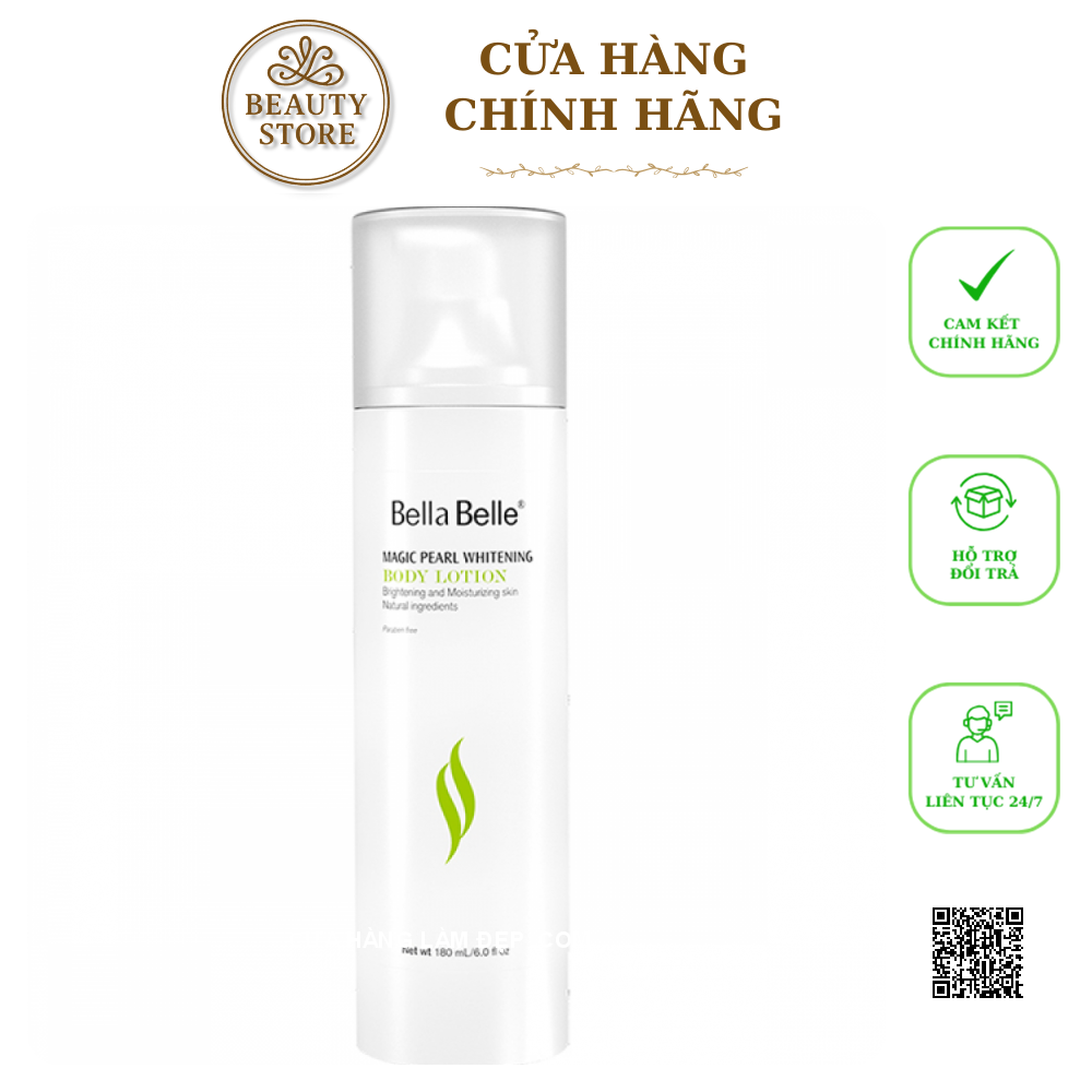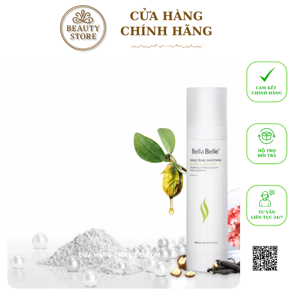 - Được sản xuất theo công nghệ hiện đại và công thức làm trắng sáng độc quyền cao cấp đến từ Hàn Quốc, kem dưỡng trắng da toàn thân Bella Belle Magic Pearl Whitening Body Lotion tập trung sử dụng nguồn thành phần chiết xuất tự nhiên an toàn, lành tính, chính là giải pháp hoàn hảo giúp bạn dưỡng ẩm nuôi dưỡng da dài lâu đồng thời làm sáng trắng da hiệu quả bất ngờ.