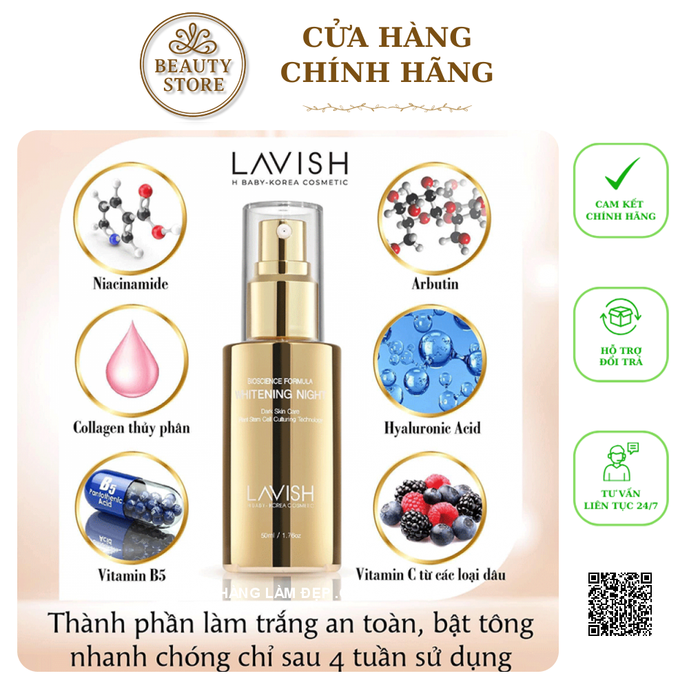 Kem Dưỡng Trắng Da Chuyên Sâu Ban Đêm Bioscience Formula Whitening Cream Lavish H Baby với thành phần chiết xuất từ thiên nhiên, thảo dược và chất làm sáng da Niacinamide an toàn, giúp loại bỏ dần các sắc tố Melanin đen xạm trên da, nuôi dưỡng da chuyên sâu và toàn diện: