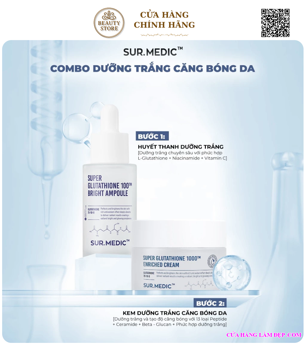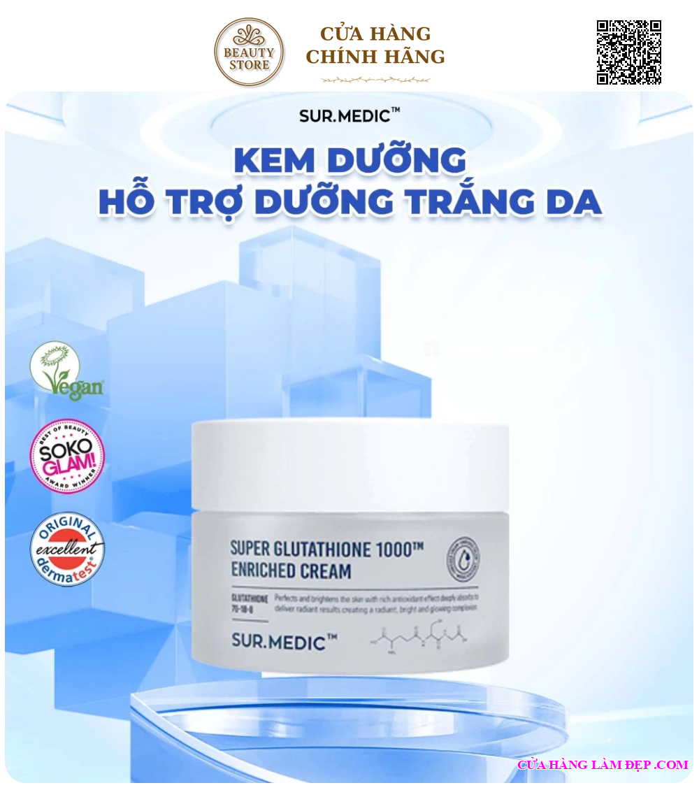 Nếu bạn đang tìm kiếm một loại kem dưỡng vừa giúp làn da rạng rỡ, vừa nuôi dưỡng từ sâu bên trong thì SUR.MEDIC Super Glutathione Enriched Cream chính là lựa chọn lý tưởng. Đây là sản phẩm đến từ thương hiệu mỹ phẩm Hàn Quốc SUR.MEDIC – nổi tiếng với các công thức chăm sóc da chuyên sâu, kết hợp giữa khoa học hiện đại và chiết xuất thiên nhiên.