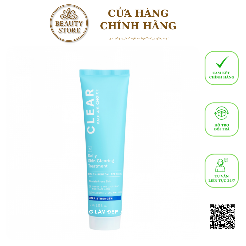 Tại hệ thống Cửa hàng làm đẹp, Kem Giảm Mụn Chuyên Sâu Paula’s Choice Clear Extra Strength Daily Skin Clearing Treatment With 5% Benzoyl Peroxide 67ml có giá: 665.000 VND