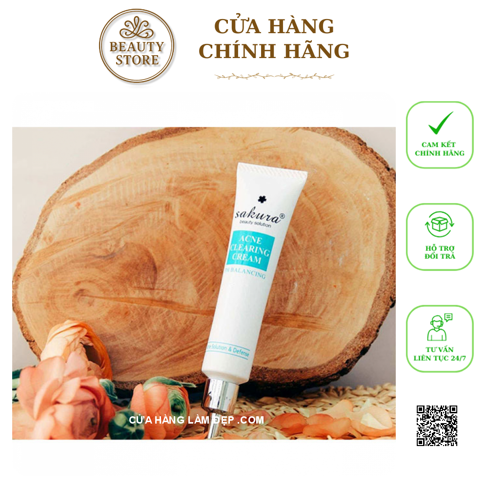Kem Làm Giảm Và Ngừa Mụn Sakura Acne Clearing Cream Nhật Bản được xem là giải pháp giúp giảm mụn hiệu quả và hỗ trợ ngừa Chuyên Sâu các loại mụn bọc, mụn mủ, mụn đầu đen, mụn trứng cá, kem Giảm Mụn Sakura còn giúp kháng viêm hiệu quả, hỗ trợ ngừa mụn tái phát. Giải quyết các vấn đề dầu thừa và làm sạch mụn trên da. Giúp se khít lỗ chân lông.