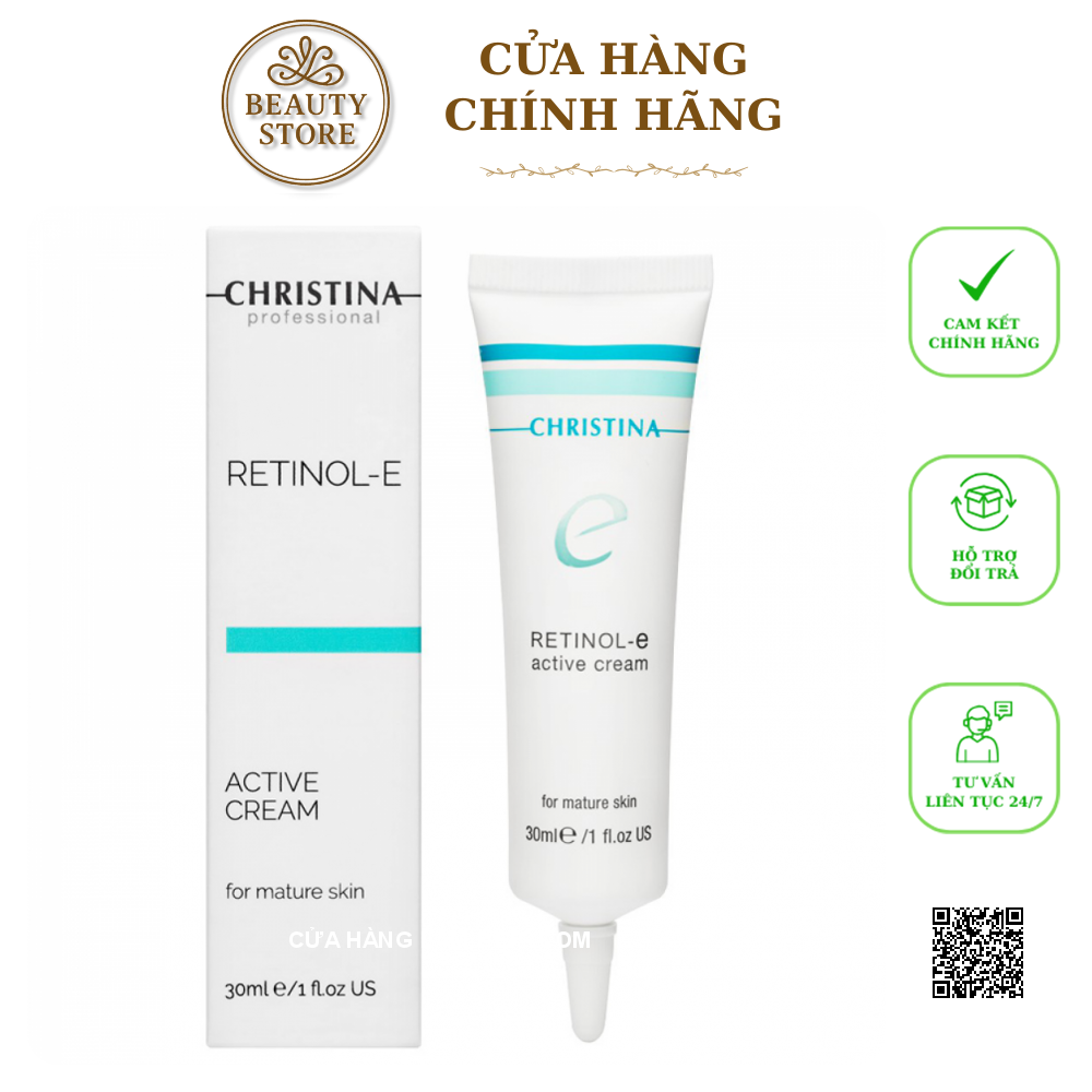 - Kem Làm Sáng hỗ trợ trẻ hóa Da Christina Retinol-E Active Cream được mệnh danh là thần dược hỗ trợ trẻ hóa da của phái đẹp. Sản phẩm được điều chế dựa trên công thức retinol - dẫn xuất của vitamin A, giúp làm phẳng các nếp nhăn cũ và hỗ trợ ngừa sự xuất hiện của các nếp nhăn mới. Làn da như được tái sinh sau khi sử dụng sau 8-12 tuần.