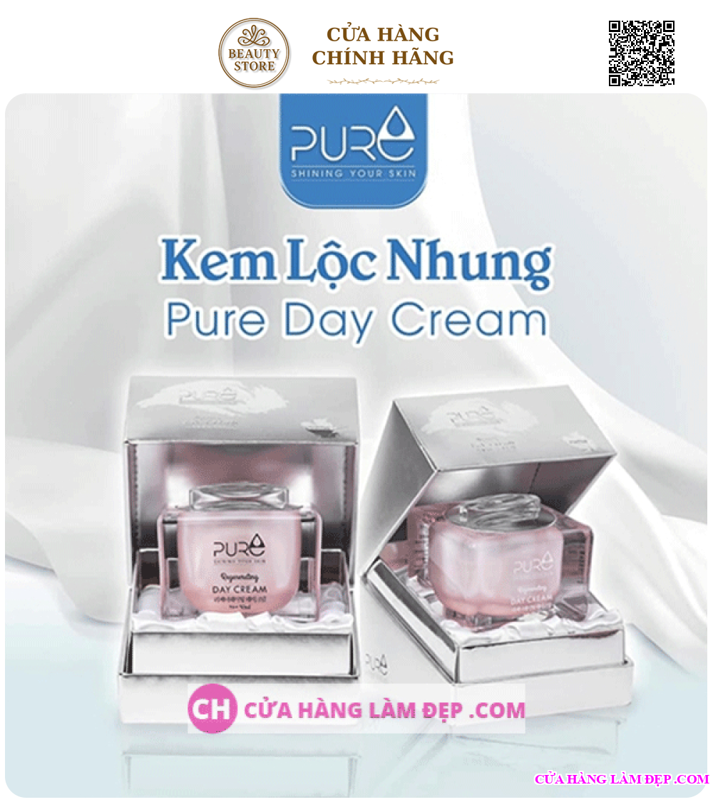 Kem Lộc Nhung Dưỡng Trắng Da Ban Ngày Pure Shining Your Skin Regenerating Day Cream mới ra mắt nhưng vô cùng hot với phái đẹp. Đây là sản phẩm được sản xuất tại Hàn Quốc. Lộc Nhung Pure vô cùng cần thiết nếu muốn sở hữu làn da căng bóng, mướt mịn, trắng sáng sau 7 ngày. Đặc biệt với công nghệ Nano Water – siêu phân tử nước tan trên da, giúp cấp nước cho da, tránh mất nước dưới tác động của ánh nắng mặt trời.