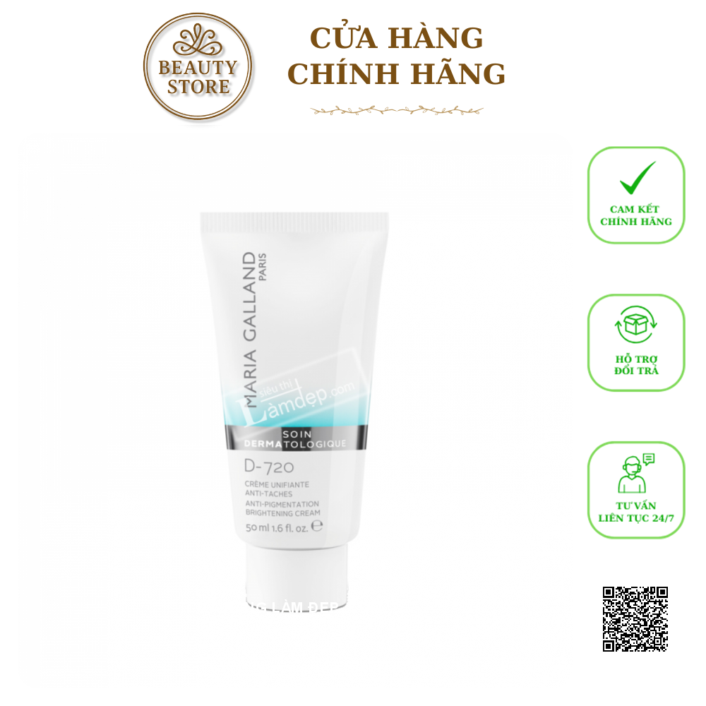 Kem Mờ Nám, Dưỡng Trắng, hỗ trợ ngừa lão hóa Maria Galland D-720 Anti-Pigmentation Brightening Cream có khả năng chống lại sự hình thành của các đốm nâu, sạm nám mới thông qua cơ chế ức chế sự hình thành melanin.
