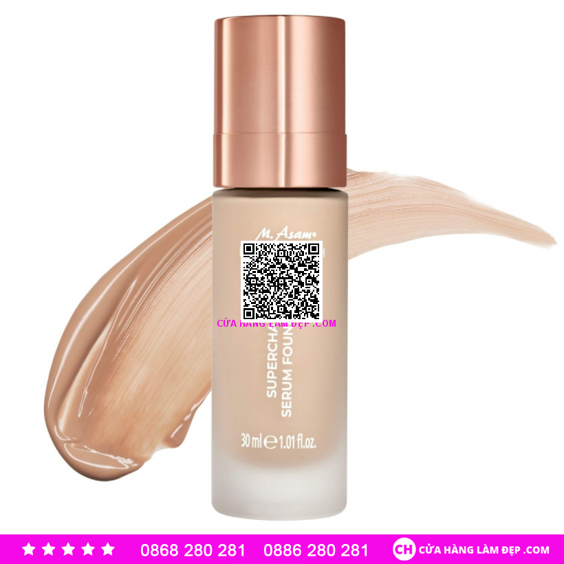- M. Asam Magic Finish Supercharge Serum Foundation 200 Warm Sand vừa cung cấp độ ẩm chuyên sâu cho da, giúp da luôn mềm mại và săn chắc mà vừa mang lại cho các nàng lớp trang điểm hoàn hảo với khả năng bám bền, ngăn ngừa tình trạng chảy nền, khô mốc và kém tự nhiên.