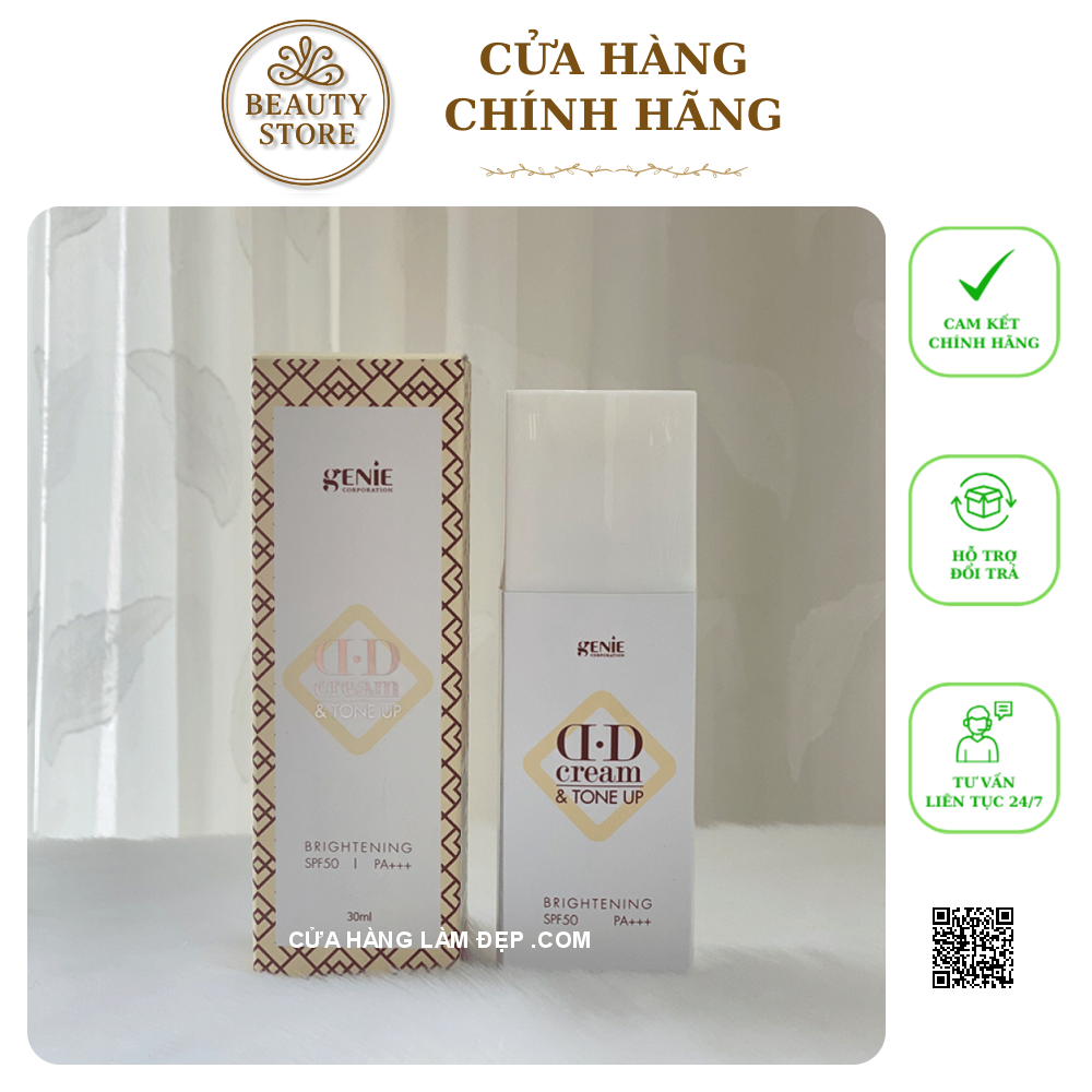 - Tại Hệ thống Cửa hàng làm đẹp, Kem Nền hỗ trợ Hỗ Trợ Chống Nắng Genie DD Cream & Tone Up có giá 590.000VNĐ