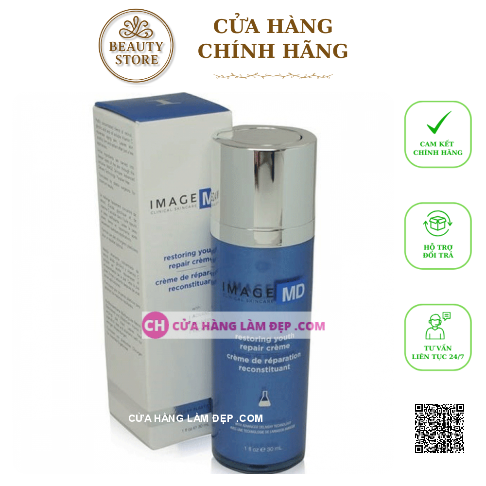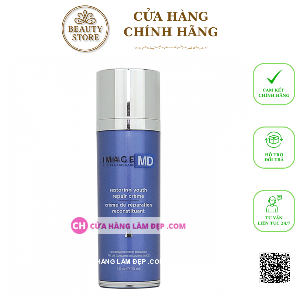 - Kem phục hồi và hỗ trợ trẻ hóa da Image MD Restoring Youth Repair Crème With ADT Technology TM chứa thành phần chính là retinol, axit glycolic và vitamin C làm tăng cường liên kết dưới da, phục hồi lại tính đàn hồi giúp cho bề mặt da dần căng mịn, trẻ trung, săn chắc và rạng rỡ chỉ sau một thời gian sử dụng.