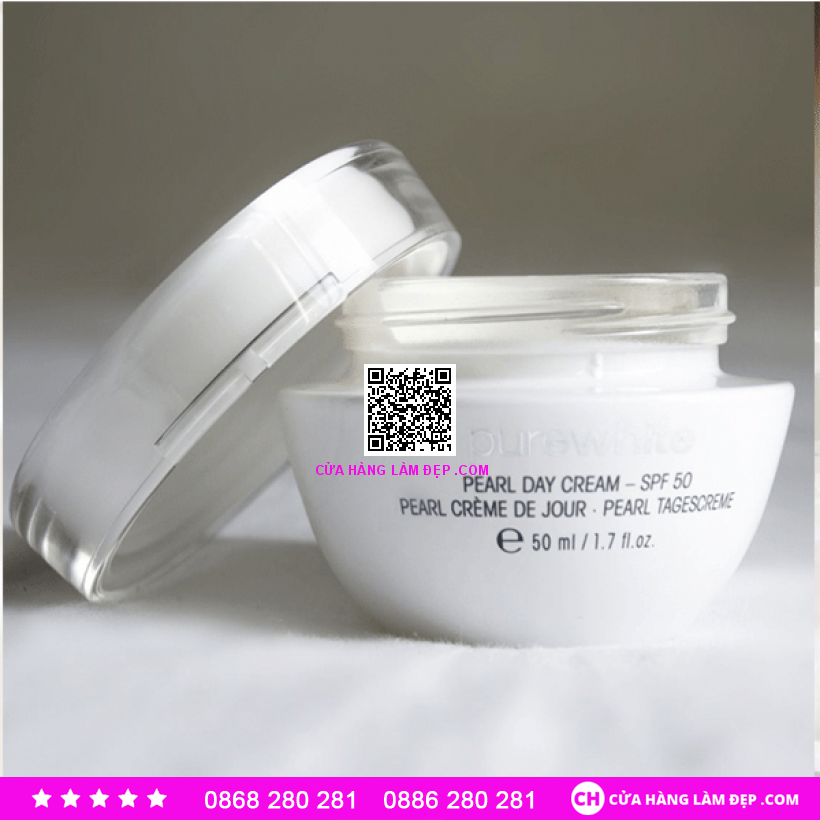 - Môi trường ô nhiễm, các tia tử ngoại trong ánh nắng mặt trời gay gắt gây tổn hại khiến làn da trở nên yếu đi, xuất hiện các vết thâm nám, sạm đen và mụn. - Thêm vào đó, làm việc liên tục ngồi trong phòng máy lạnh, thiếu độ ẩm và căng thẳng cũng khiến da bị thiếu nước, lão hóa nhanh hơn. Chính vì vậy cần nhanh chóng có giải pháp chăm sóc làn da đúng cách. - Cùng với việc sử dụng kem dưỡng da ban đêm, biết cách dùng kem dưỡng trắng ban ngày Pearl Day Cream SPF 50 để vừa dưỡng ẩm, vừa bảo vệ da là một trong những cách tăng độ sáng hiệu quả nhất. - Với tinh chất purine ngọc trai và vitamin C với SPF 50 giúp bảo vệ chuyên sâu hỗ trợ ngừa lại sự lão hóa do tia cực tím gây ra. Thành phần làm trắng da tự nhiên, đảm bảo làn da rạng rỡ và tươi trẻ.