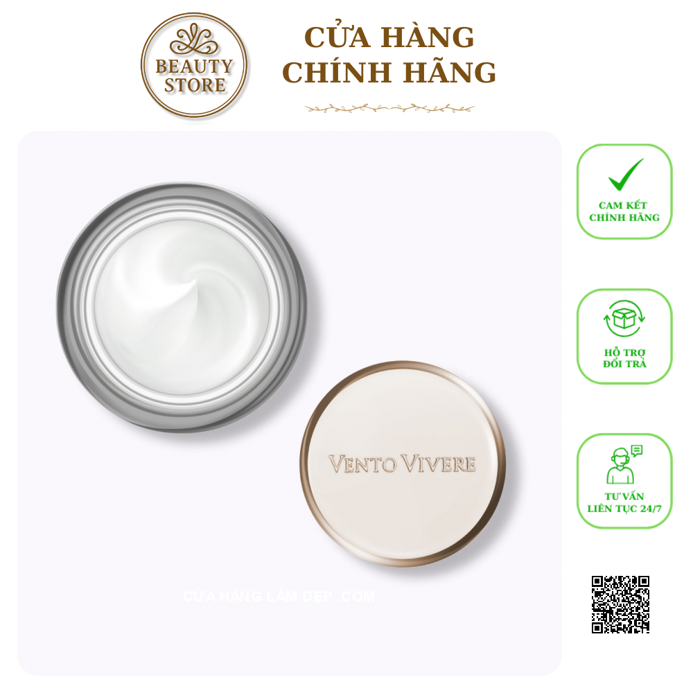 - Kem Trắng Da Vento Vivere White Truffle Cellular Cream thuộc dòng sản phẩm dưỡng da bậc nhất hiện nay của Vento, với chiết xuất từ những nguyên vật liệu quý hiểm cùng công nghệ Thế hệ III nổi bật tại Thụy Sĩ, trong đó có chứa nhân bào tử của nấm trắng Truffle có tác dụng tái tạo cấu trúc da, se khít lỗ chân lông, làm sạch mụn ẩn, giảm mụn, giảm sưng viêm, kiểm soát dầu nhờn, làm đầy sẹo rỗ, xóa mờ thâm sạm, ức chế hình thành sắc tố melanin, dưỡng da sáng hồng và hỗ trợ trẻ hóa, tăng cường khả năng phục hồi thương tổn, giảm kích ứng da, cân bằng độ ẩm và độ pH tự nhiên, ngăn chặn tình trạng da khô nứt và sần sùi, kích thích tuần hoàn máu dưới da, phục hồi sinh khí, thúc đẩy quá trình sản sinh các sợi collagen và elastin mới, làm mờ các nếp nhăn và đường nhăn (trán, đuôi mắt, khóe môi...), làm chậm quá trình lão hóa da,…