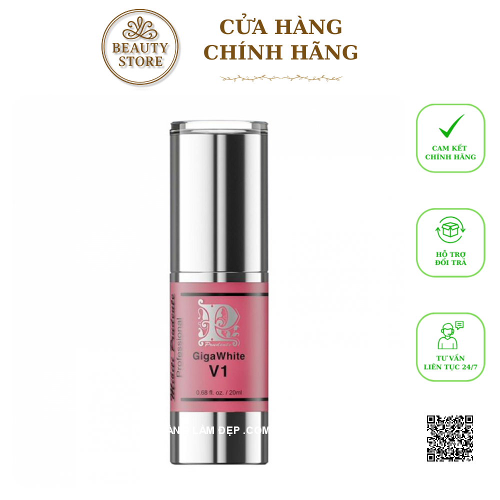 - GigaWhite V1 Mibiti Prudente Professional có tác dụng hỗ trợ Hỗ Trợ Chống oxy hóa mạnh cho làn da và tăng sản xuất collagen.