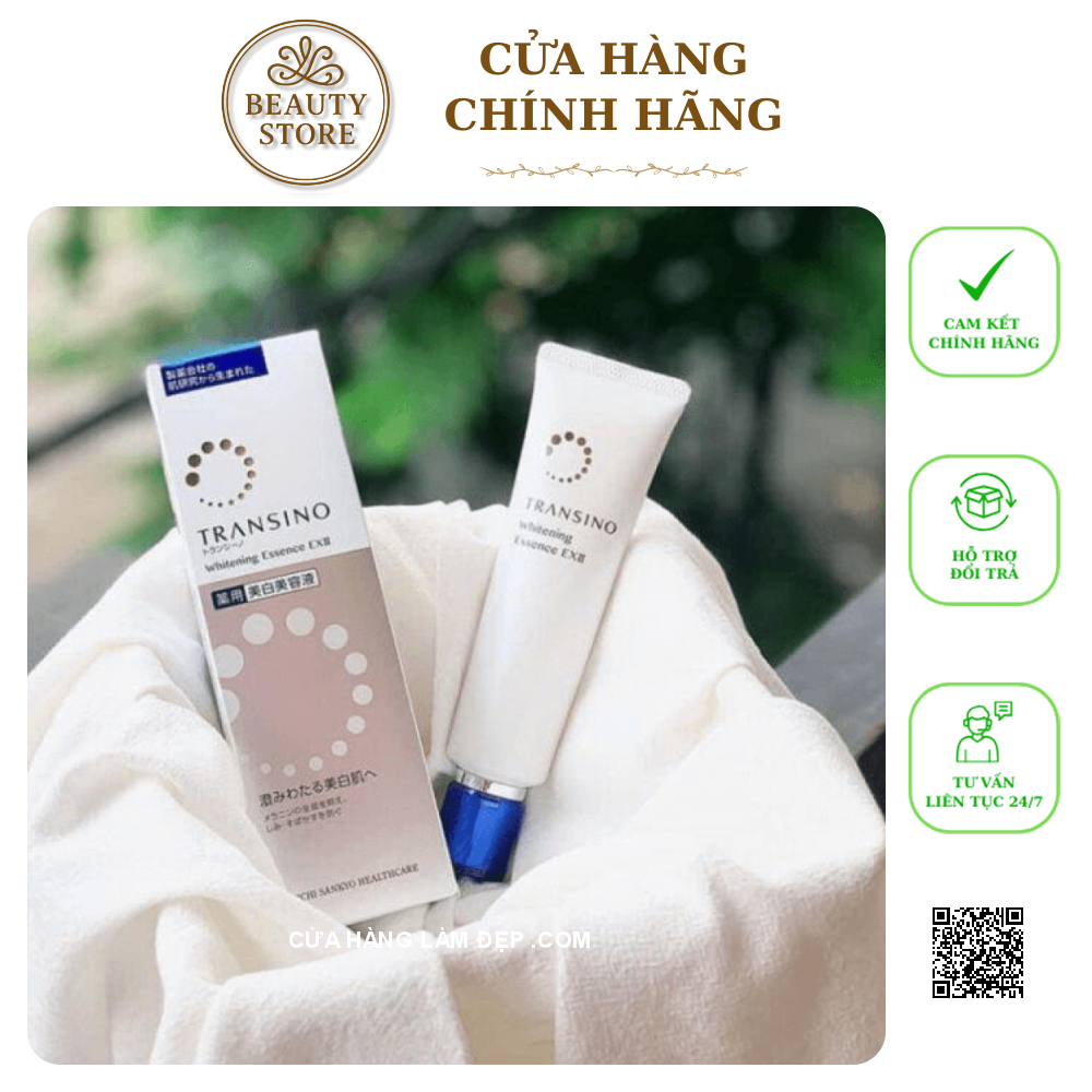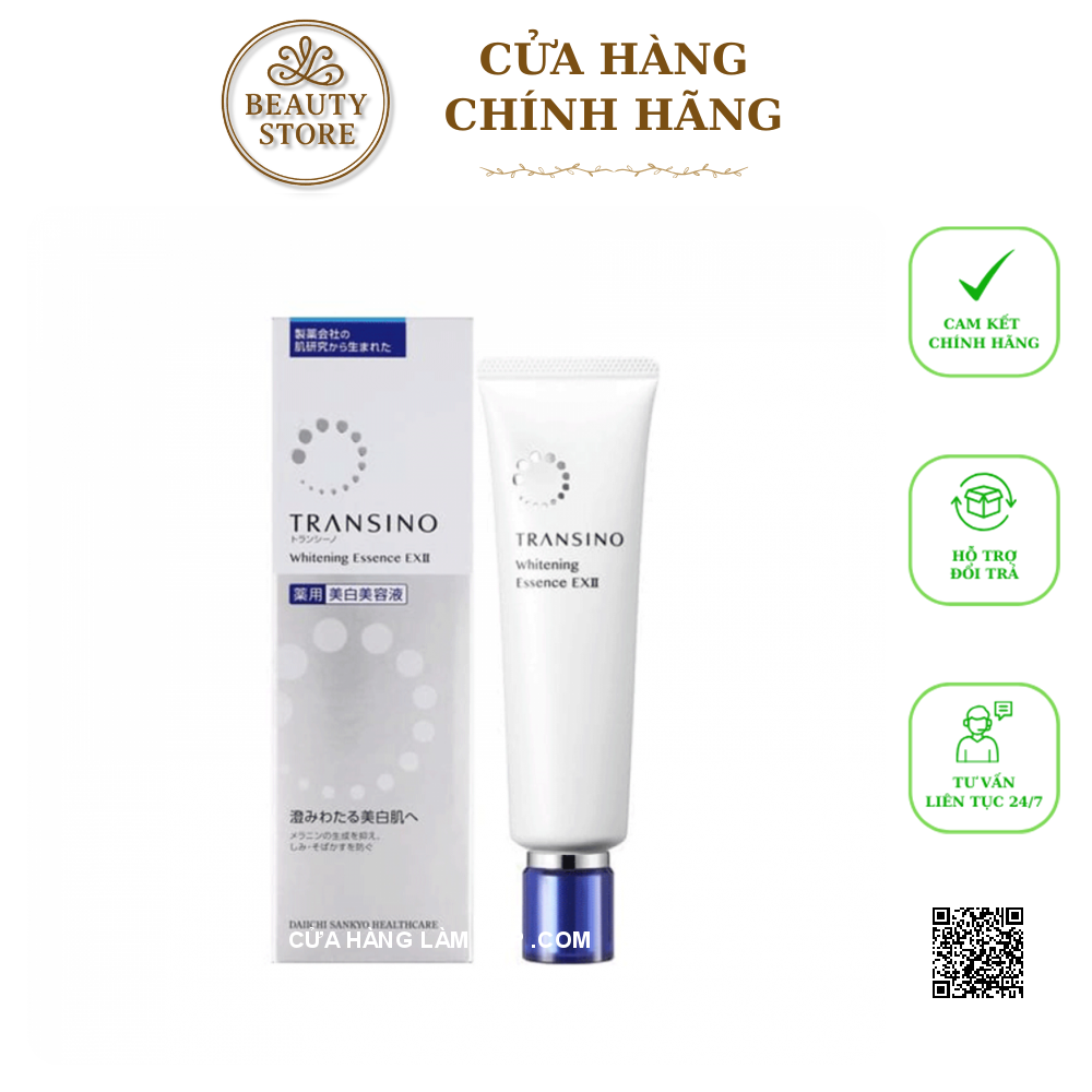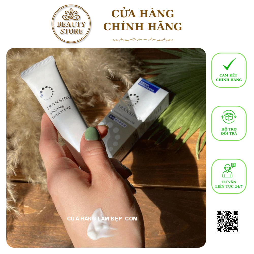 - Đồng thời thành phần dưỡng da cao cấp bên trong tuýp Kem Mờ Nám Whitening Essence EXII Transino song song dưỡng mịn và Hỗ Trợ Ngừa Lão Hóa cho da. Những trường hợp da không có nám, tàn nhang nhưng thâm sạm, không được sáng đều màu khi sử dụng serum Transino cũng rất nhanh chóng đạt được hiệu quả mong muốn