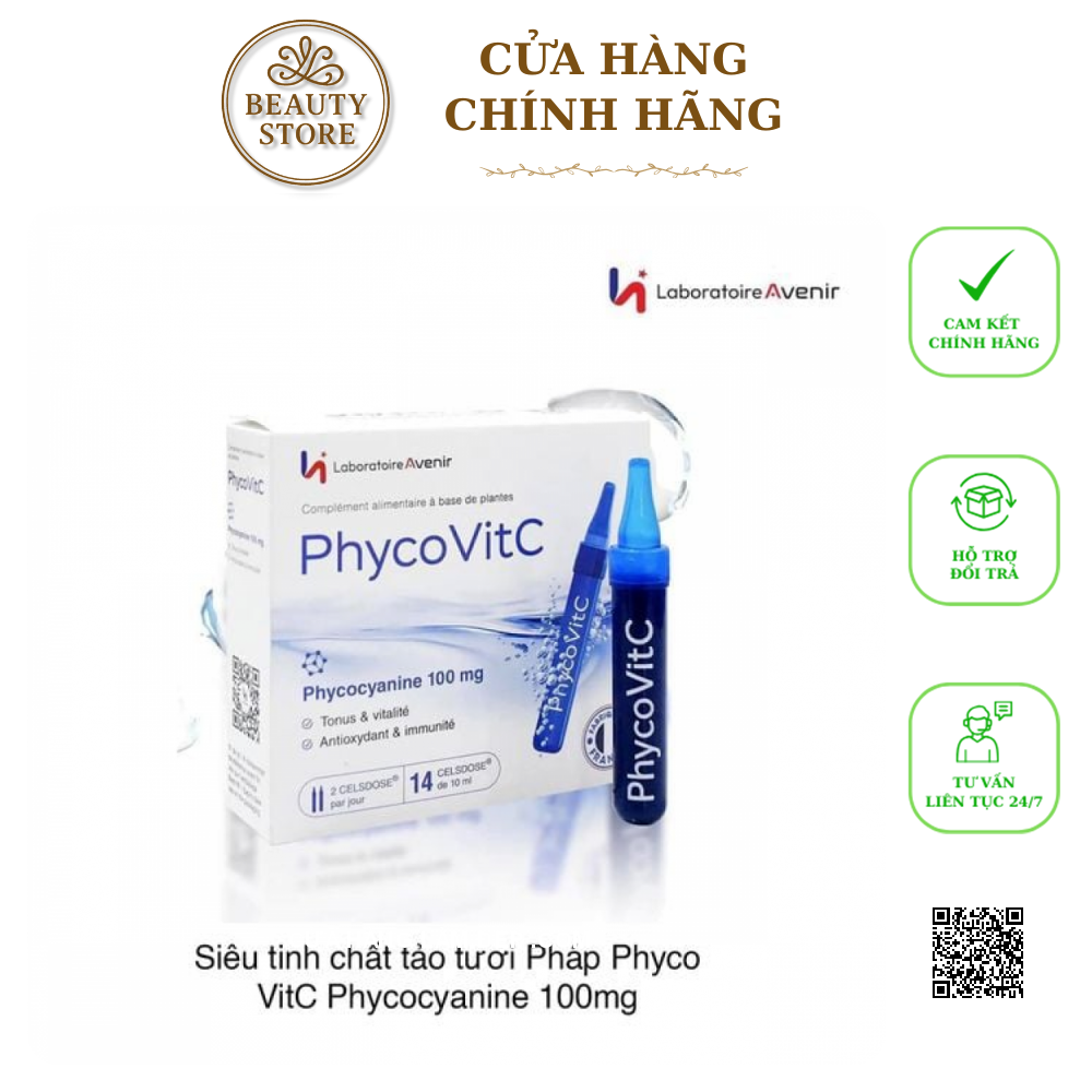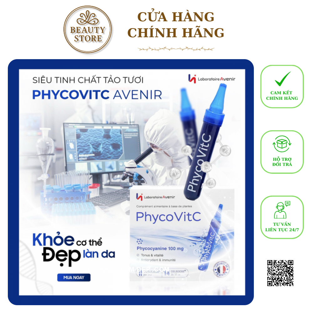 PhycovitC là siêu tinh chất tảo tươi thế hệ mới đến từ Laboratoire Avenir – Pháp, nổi bật với công thức kết hợp giữa Phycocyanin, Vitamin C và tinh dầu hoa bất tử Immortelle. Đây là sản phẩm chăm sóc sức khỏe và sắc đẹp toàn diện, giúp hỗ trợ trẻ hóa làn da, tăng sức đề kháng, thải độc và Hỗ Trợ Ngừa Lão Hóa từ bên trong.
