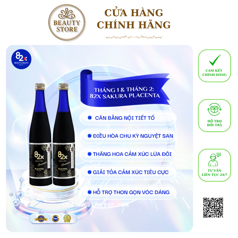 - Tháng 1 & tháng 2: 82X Sakura Placenta sẽ là trợ thủ giúp Nàng cân bằng nội tiết, điều hòa chu kỳ nguyệt san, thăng hoa cảm xúc lứa đôi, giải tỏa cảm xúc tiêu cực sau những giờ làm việc căng thẳng.