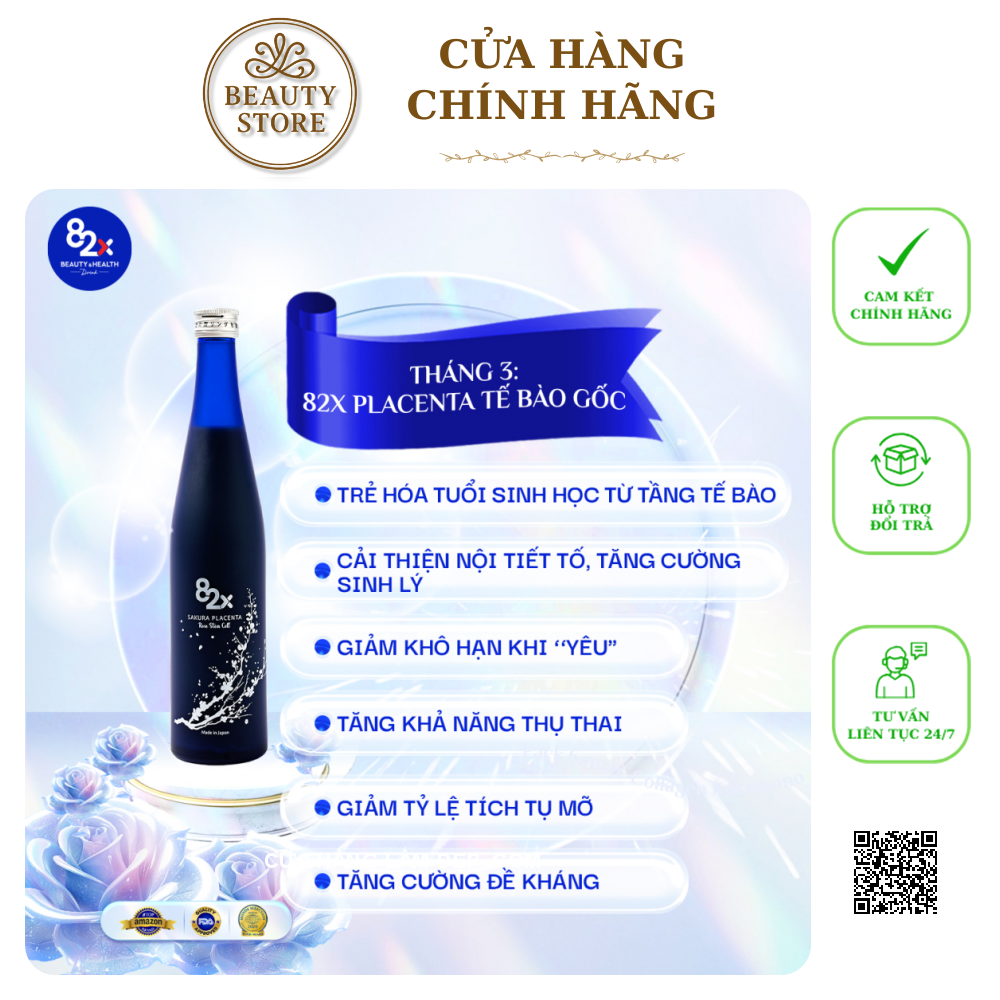 - Tháng 3: 82X Placenta Tinh Chất Tinh chất giúp Nàng hỗ trợ trẻ hóa toàn diện, ổn định hormone nữ, giảm tình trạng “khô hạn” khi ân ái, tăng khả năng thụ thai cho những ai mong muốn làm mẹ. Đây còn là chìa khóa giúp phái đẹp giảm tỷ lệ tích tụ mỡ thừa, tìm lại vóc dáng quyến rũ như thuở đôi mươi.