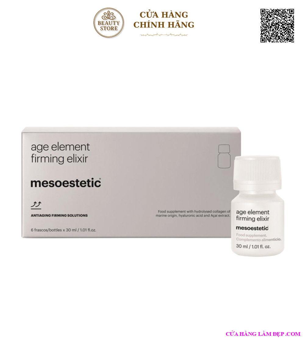 Mesoestetic Age Element Firming Elixir là nước uống bổ sung collagen cao cấp đến từ thương hiệu dược mỹ phẩm Mesoestetic – Tây Ban Nha, nổi tiếng với các giải pháp hỗ trợ chống lão hóa chuyên sâu. Sản phẩm chứa 10g collagen thủy phân, kết hợp Hyaluronic Acid và các chiết xuất chống oxy hóa, giúp nuôi dưỡng làn da từ bên trong, cải thiện độ đàn hồi, giảm nếp nhăn và mang lại vẻ ngoài căng mịn, rạng rỡ.