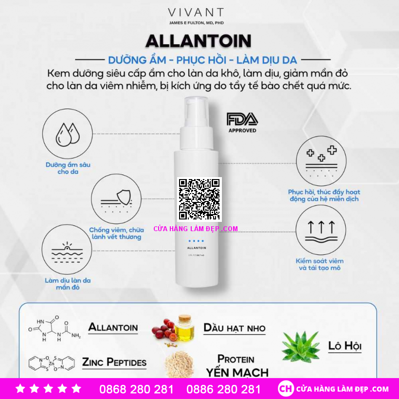 Thành Phần Lotion Dưỡng Ẩm Và Làm Dịu Da Vivant Skincare Allantoin: