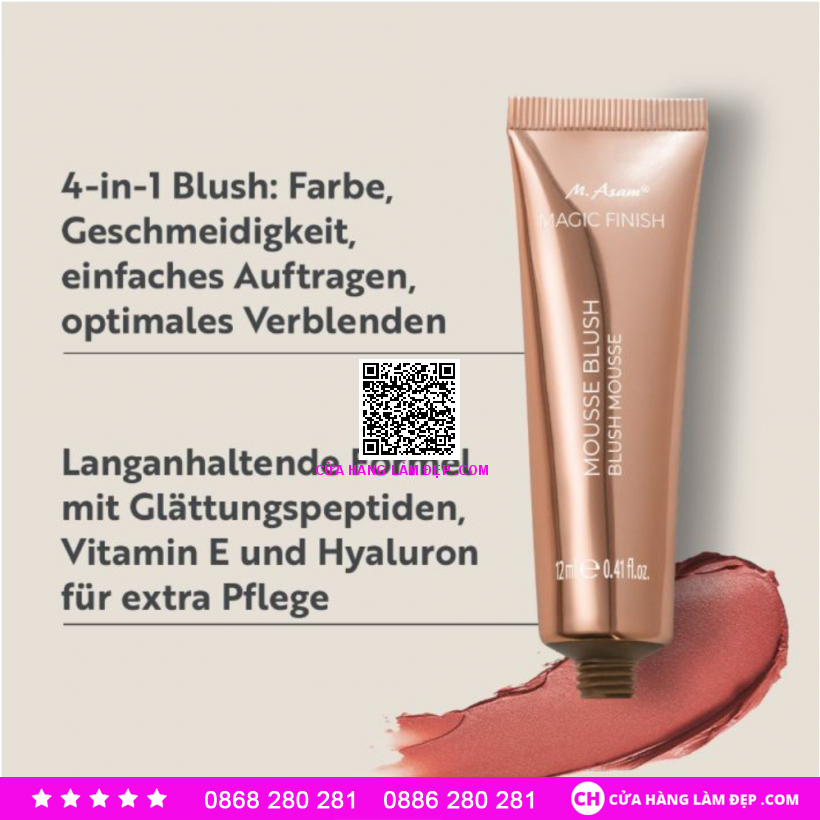 Giới Thiệu Má Hồng Dạng Kem Màu Hồng Đất M. Asam Magic Finish Mousse Blush Barely Chai:
