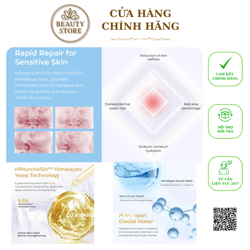 Chiết xuất nấm men được cấp bằng sáng chế để phục hồi da: Chứa 6,5% nấm men Himalaya HiMurchaSin, công thức này tích cực phục hồi và tăng cường hàng rào bảo vệ da, ổn định hệ sinh thái tự nhiên của da và thúc đẩy quá trình tái tạo Tinh chất để bảo vệ da khỏi các tác nhân gây căng thẳng từ môi trường.
