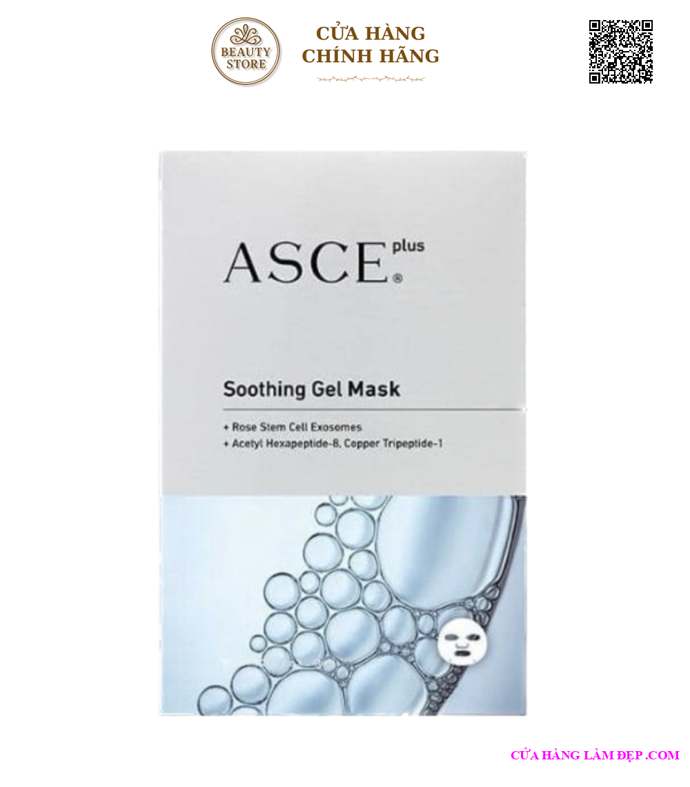- ASCE Plus Soothing Gel Mask là mặt nạ phục hồi da công nghệ exosome, làm mát và làm dịu da, được chiết xuất từ tinh chất exosome Tinh Chất Tế Bào hoa hồng có nguồn gốc từ Rosa Damascena và được tinh chế bằng công nghệ ExoSCRT™ độc quyền giúp làm dịu ngay lập tức cho làn da nhạy cảm hoặc bị viêm.