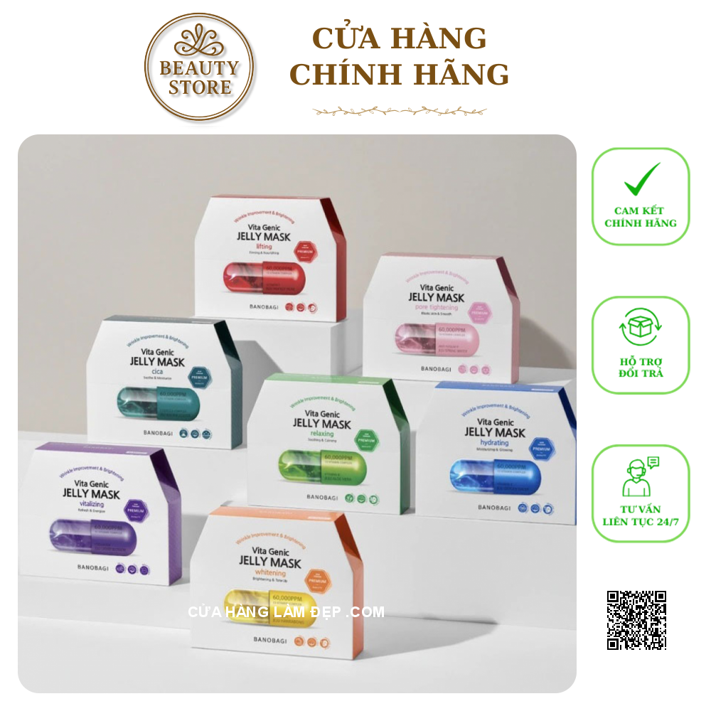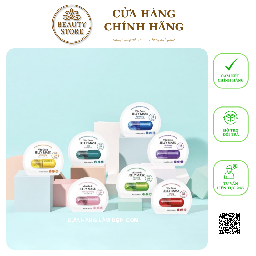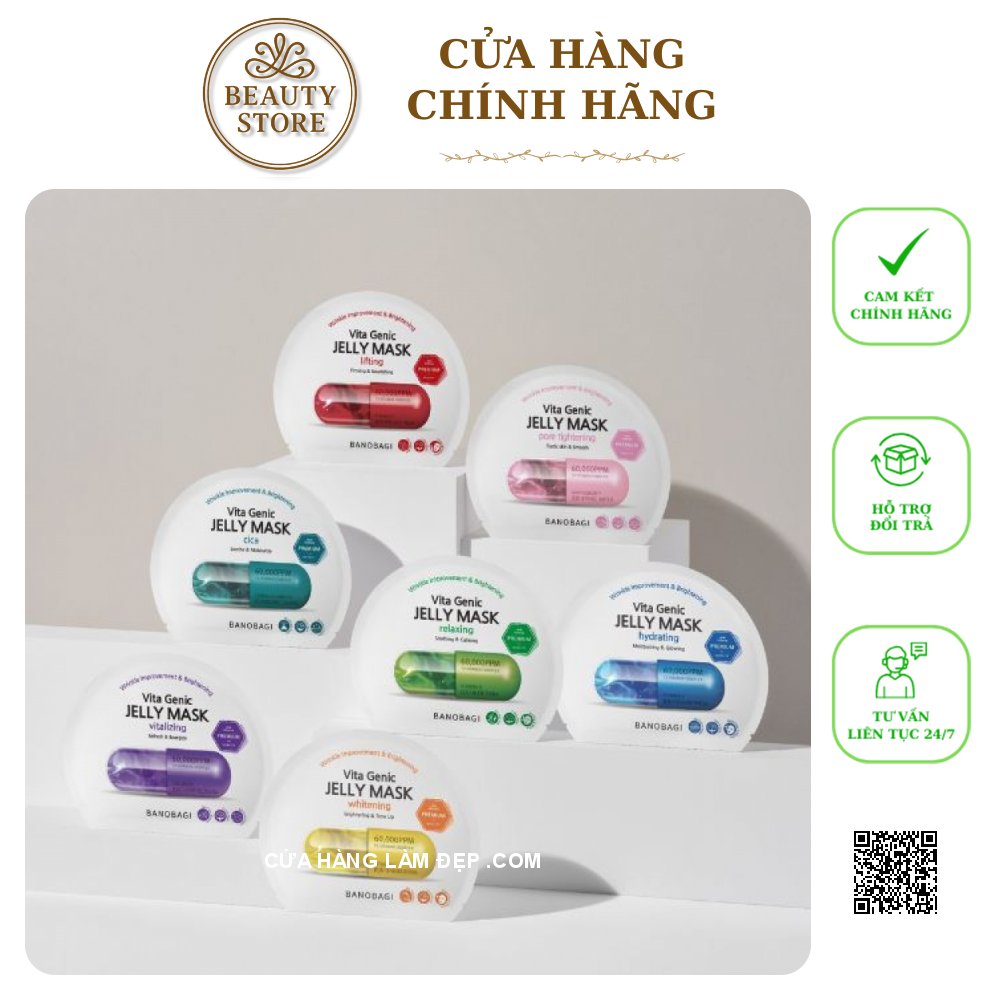 Banobagi Vita Genic Jelly Mask là dòng mặt nạ nổi tiếng đến từ thương hiệu dược mỹ phẩm Hàn Quốc Banobagi, được nghiên cứu bởi các bác sĩ da liễu thuộc bệnh viện thẩm mỹ Banobagi danh tiếng. Mỗi miếng mặt nạ chứa đến 0.000 ppm vitamin cô đặc cùng tinh chất dạng gel (jelly) đậm đặc, giúp nuôi dưỡng, phục hồi và cải thiện làn da chỉ sau 15–20 phút sử dụng.
