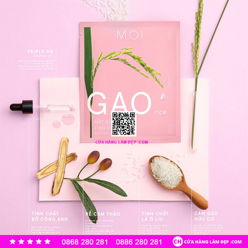 -M.O.I Cosmetics là thương hiệu còn khá mới mẻ của Việt Nam, được viết tắt từ cụm “Make Over Image”. Chắc hẳn có nhiều bạn sẽ đặt ra câu hỏi các sản phẩm của M.O.I liệu có tốt không? Câu trả lời là có, các sản phẩm của thương hiệu này đều được đầu tư nghiên cứu, sản xuất bằng công nghệ hiện đại và kiểm định vô cùng kĩ lưỡng tại Hàn Quốc, đạt tiêu chuẩn chất lượng ở cả Việt Nam lẫn xứ củ sâm. Các sản phẩm trang điểm và dưỡng da hướng đến đối tượng chính là người Việt nên yếu tố thu nhập, khí hậu và phong cách được chú trọng trong từng sản phẩm. -Với chiết xuất từ cám gạo, chiếc mặt nạ quốc dân này đem lại cho người sử dụng một làn da tươi sáng, ẩm mượt và thải hết độc tố ngay lần đầu tiên sử dụng.