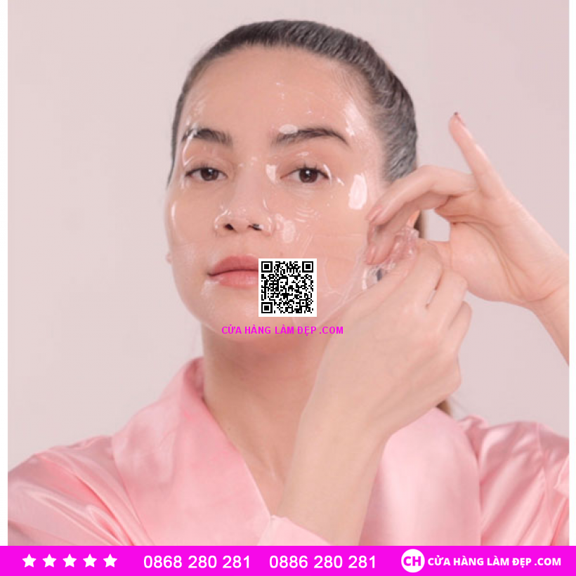 -Bước 1: Đổ một ít tinh chất từ gói mặt nạ ra lòng bàn tay, xoa đều nhẹ nhàng lên cả khuôn mặt trong vòng 30 giây. -Bước 2: Lấy miếng mặt nạ ra, gỡ một lớp film và giữ lại lớp film còn lại để định hình mặt nạ trên khuôn mặt được dễ dàng, áp miếng mặt nạ ở nửa trên khuôn mặt trước rồi đến miếng của nửa dưới khuôn mặt. -Bước 3: Gỡ lớp film còn lại ra, vuốt cho mặt nạ ôm khít vào khuôn mặt. -Bước 4: Tận dụng nốt tinh chất còn lại trong túi đựng mặt nạ để thoa lên cổ, tay, … -Bước 5: Sau khi đắp từ 20 – 40 phút, tháo mặt nạ ra và mát xa nhẹ nhàng bằng các đầu ngón tay để dưỡng chất thấm đều vào da.