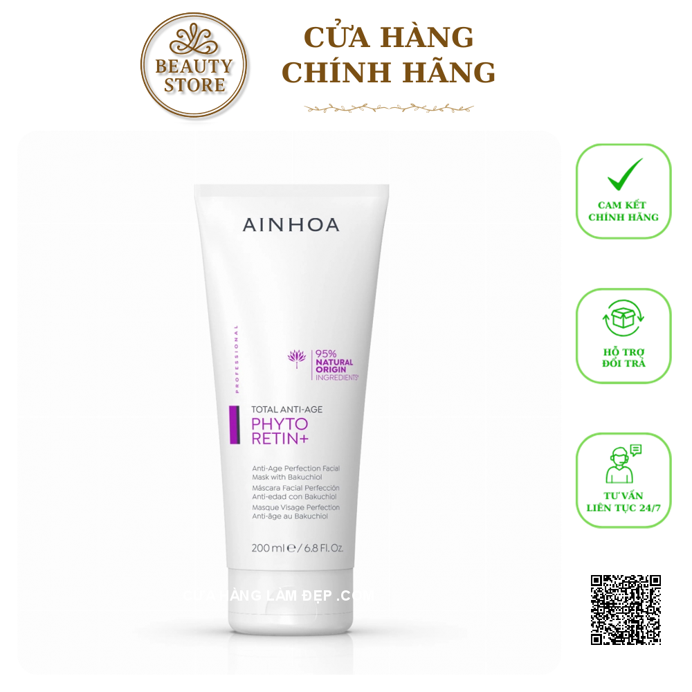 Mặt Nạ Hỗ Trợ Ngừa Lão Hóa AINHOA Phyto-Retin Anti-Age Perfection Facial Mask with Bakuchiol thuộc dòng sản phẩm Ainhoa Phyto Retin + care chứa nồng độ cao các hoạt chất và thành phần tự nhiên. Các thành phần được lựa chọn kỹ lưỡng theo nhu cầu của người dùng cùng với kiến thức chuyên môn về da mặt để phát huy tối đa tác dụng của sản phẩm mà không gây tổn hại cho da. Chứa 95% thành phần tự nhiên giúp giảm các dấu hiệu lão hóa. Ngoài ra, thành phần của mặt nạ tuân thủ tiêu chuẩn ISO 16128, xác định hàm lượng thành phần của sản phẩm là tự nhiên.